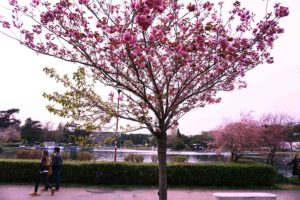 In territorio capitolino sono presenti alcuni parchi dove celebrare l’evento. Al Parco del Lago dell’EUR sono piantati circa 150 ciliegi, donati alla città di Roma nel 1959 dal primo ministro giapponese Nobusuke Kishi in segno di amicizia. Come spiega Luigina Quercia – sinologa, studiosa e guida orientalista presso l’Associazione Culturale Kairós– “la maggior parte di questi ciliegi furono usati per adornare il laghetto artificiale; per questo motivo il percorso pedonale che lo costeggia è stato denominato Passeggiata del Giappone, inaugurato in occasione dei giochi Olimpici del 1960. La presenza di così tanti Sakura in un solo luogo, che molto ricorda i paesaggi giapponesi per via del territorio scosceso, ha fatto sì che per molto tempo fosse il punto di ritrovo della comunità nipponica in Italia e a Roma”. Proprio per tale particolare conformazione del territorio l’Associazione Kairós nata nel 2004 “con lo scopo di accrescere e sviluppare le potenzialità dell’individuo attraverso attività culturali”, organizza da tempo percorsi dedicati all’Hanami con particolare attenzione anche ad attività dedicate ai bambini.Altra importante iniziativa è stata organizzata dall’Istituto Giapponese di Cultura di Roma in collaborazione con il Museo Orto Botanico di Napoli, Ikebana Ohanra A.L.U. Study Group, Studio Arti Floreali, Centro Diffusione Origami con il patrocinio della Fondazione Italia Giappone: il 12, il 13 ed il 14 aprile presso l’Orto Botanico della Sapienza “sarà possibile ammirare la bellezza della fioritura dei ciliegi, partecipare a visite guidate, ad attività didattiche per i bambini e a conferenze sul tema”.Per festeggiare l’arrivo della primavera, inoltre, domenica 15 aprile dalle ore 10.30 alle ore 20.00 presso Largo Venue e con ingresso ad offerta libera sarà allestito un mercatino giapponese. Il “Sakura Matsuri”: sarà possibile accedere a quattro padiglioni divisi per aree tematiche ove trascorrere una piacevole giornata all’insegna del cibo, della musica e della cultura giapponese.