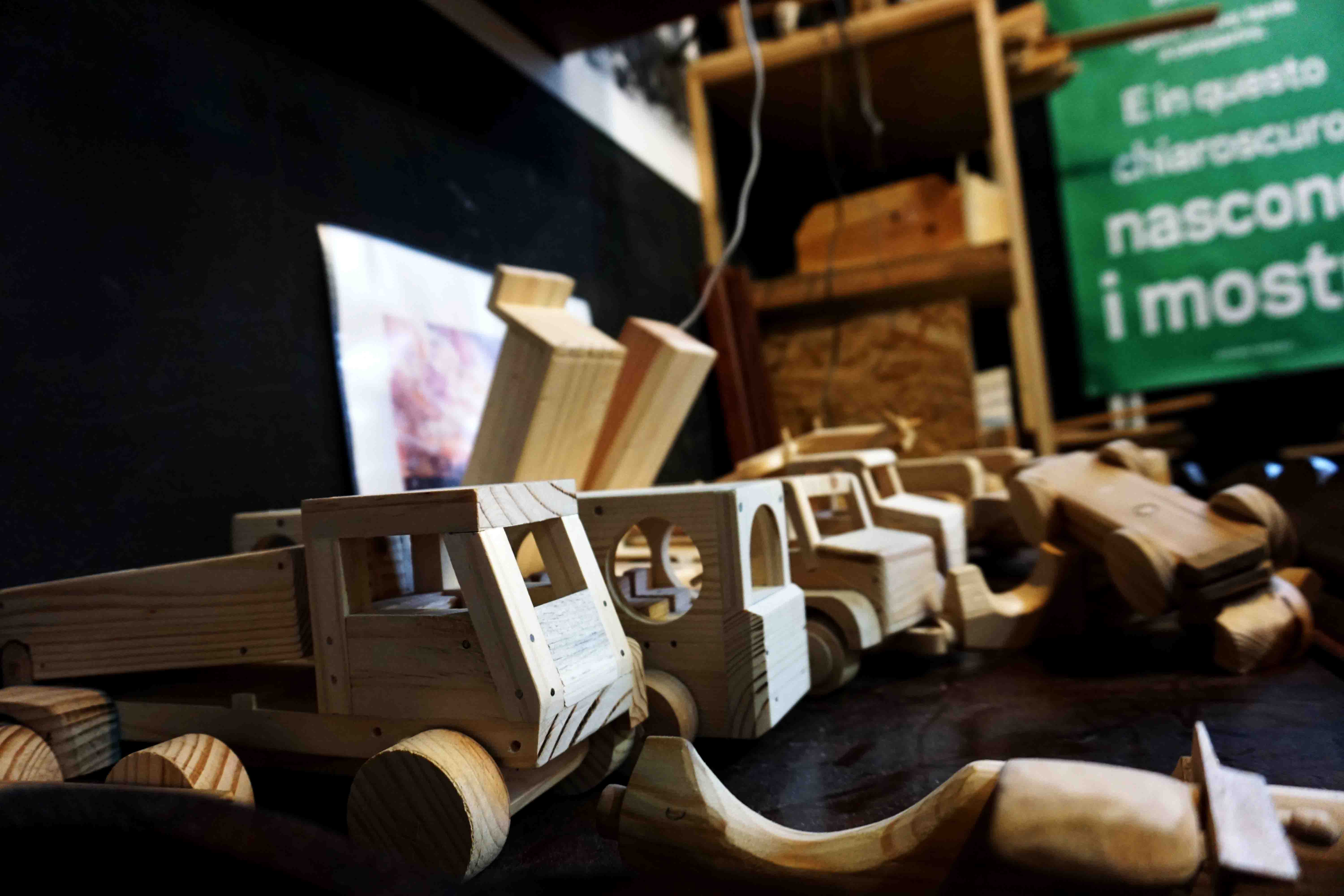 “Inizialmente vivevo ad Anzio, vicino il mare. Avevamo un piccolo garage dove ho iniziato a costruire dei giocattoli per i miei figli. Le persone non riuscivano a credere fossi in grado di lavorare il legno in quel modo.Ho avuto poi modo di parlare con la persona che si occupa della gestione e il coordinamento degli spazi e laboratori del Villaggio Globale e le ho spiegato la mia idea di aprire il laboratorio: ne è stata entusiasta. L’idea non è solo quella di costruire e vendere giocattoli ma anche quella di insegnare ai bambini come farlo, cercando di trasmettere loro fiducia nelle proprie capacità.”