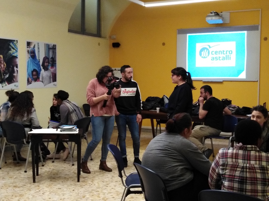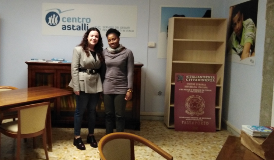 Al Centro Astalli fervono i preparativi dei ragazzi impegnati nel servizio civile, i giovani migranti stanno realizzando un video con le loro domande per Romano Prodi, relatore della prima giornata del corso di formazione: “Europa futuro plurale. Con i migranti verso un nuovo spazio comune”, che si svolgerà dal 15 maggio alla pontificia università Gregoriana.A riprendere i ragazzi e a montare le immagini è Haizea Mariti, una bella ragazza basca di madre e italiana di padre che, migrante non è, ma incarna il prototipo della “generazione Erasmus”, che vive effettivamente la dimensione del mondo come “spazio comune” e che di migranti si occupa a tempo pieno.Haizea mentre riguarda le immagini riprese“Fino a 15 anni – dice – ho vissuto negli Stati Uniti, poi sono andata a Bilbao per frequentare l’università, ho fatto un anno di Erasmus a Bordeaux e ho preso un master in cooperazione internazionale a Londra”. Era il 2016. Mentre Haizea studia a Londra, a Calais si ammassano nel gigantesco quanto spontaneo campo profughi, definito per le sue invivibili condizioni “la giungla”, fino a diecimila migranti. Sperano di lasciare la Francia e di raggiungere il Regno Unito, a bordo dei treni e dei camion di passaggio attraverso il tunnel e il canale della Manica, ma vengono sistematicamente ricacciati indietro alla frontiera francese. “Sono sempre stata molto interessata alla tematica della migrazione – racconta Haizea – non potevo restare a guardare quello che stava succedendo, senza fare niente”.Un momento della riunione dei ragazzi impegnati nel servizio civile del Centro AstalliCosì Haizea fonda con altri studenti, all’interno della Soas Students’ Union, la “Soas goes to Calais”, un’associazione che promuove eventi e concerti per raccogliere fondi e difendere le ragioni dei migranti, lasciati a vivere in pieno inverno in tende e baracche di fortuna. “Io poi sono andata via da Londra, ma sono restata in contatto con l’associazione che si occupa ancora delle situazioni estreme come quella di Calais. Il nostro obiettivo ultimo – chiarisce Haizea – è aprire le frontiere al di là e al di fuori dell’Europa e vedere migranti e rifugiati ricevuti con dignità e rispetto, chiunque essi siano e ovunque vadano”.Con questo tipo di ragazzi si dovrà confrontare il 15 maggio Romano Prodi che aprirà la sessione del corso di formazione, organizzato dal Centro Astalli, dedicata a trovare proposte “per un Europa di cittadini, radicata nel rispetto dei diritti umani e nei valori di solidarietà e giustizia”. Da gennaio Haizea sta svolgendo il servizio civile presso il centro dei gesuiti dove si occupa, insieme alle altre due protagoniste di questo articolo, Roberta e Nelly, di due progetti didattici: “Finestre” e “Incontri” ideati per approfondire le tematiche legate al diritto di asilo e al dialogo interreligioso nelle scuole. Ognuna di loro accompagna nelle scuole medie e superiori, in qualità di operatrice, un rifugiato accolto dal Centro Astalli o un testimone di una religione presente in Italia, l’obiettivo è stimolare il pensiero critico dei ragazzi, aiutandoli a superare gli stereotipi più ricorrenti o a colmare lacune dovute alla mancanza di informazioni. Quest’anno nella sola sede di Roma, sono stati 12mila i rifugiati accolti da Astalli, secondo il Rapporto presentato di recente.Roberta e Nelly in una pausa delle riprese“L’interazione tra ragazzi è davvero molto importante – dice Roberta Tombolillo, italiana a tutti gli effetti che si sta laureando in cooperazione internazionale. Noi operatrici facciamo un’introduzione generale mettendoci “nei panni dei rifugiati” poi è lo stesso protagonista a raccontare la sua storia. Nell’aula prima chiassosa, scende un silenzio assoluto: i ragazzi italiani vengono messi di fronte all’emozione che scaturisce dal racconto delle storie vissute e allo stesso tempo il fatto di essere ascoltati per i rifugiati significa non essere più invisibili in un paese che non è il loro”.Il dialogo interreligioso“Quando entro in classe insieme al rifugiato che accompagno in qualità di operatrice – aggiunge Nelly Macheumo, che fornisce un punto di vista diverso – quasi sempre i ragazzi prendono anche me per uno di quelli arrivati con i barconi, per via del colore della mia pelle. La sorpresa arriva quando scoprono che parlo bene l’italiano e che sono arrivata normalmente con l’aereo”.Nelly ha una storia molto diversa da quella di Haizea e di Roberta , ma allo stesso tempo è anche lei una “cittadina del mondo”. E’ venuta in Italia nel 2012 dal Camerun con un visto regolarmente rilasciato dall’ambasciata e dopo aver seguito un corso di italiano, per studiare Chimica all’università. Vive al Centro di Accoglienza Pedro Arrupe del Centro Astalli dove fa la volontaria nella casa di Maria Teresa, dedicata alle madri sole, in situazioni di disagio. “Insegno loro come devono relazionarsi per vivere insieme – dice – e mi occupo di sbrigare le commissioni che ci sono sempre da fare fuori”.All’università di Tor Vergata vorrebbe fare, dopo la triennale, la specialistica in Chimica computazionale, quella branca della chimica che sviluppa i modelli matematici. L’obiettivo di Nelly è lanciare un nuovo marchio di cosmetica naturale “da realizzare nel mio paese dove c’è grande quantità di materie prime come fiori e piante. Nei prodotti di cosmetica – denuncia Nelly – oggi prevalgono le materie prime artificiali che possono anche essere dannose per la pelle, io invece voglio studiare una linea davvero ecosostenibile”.