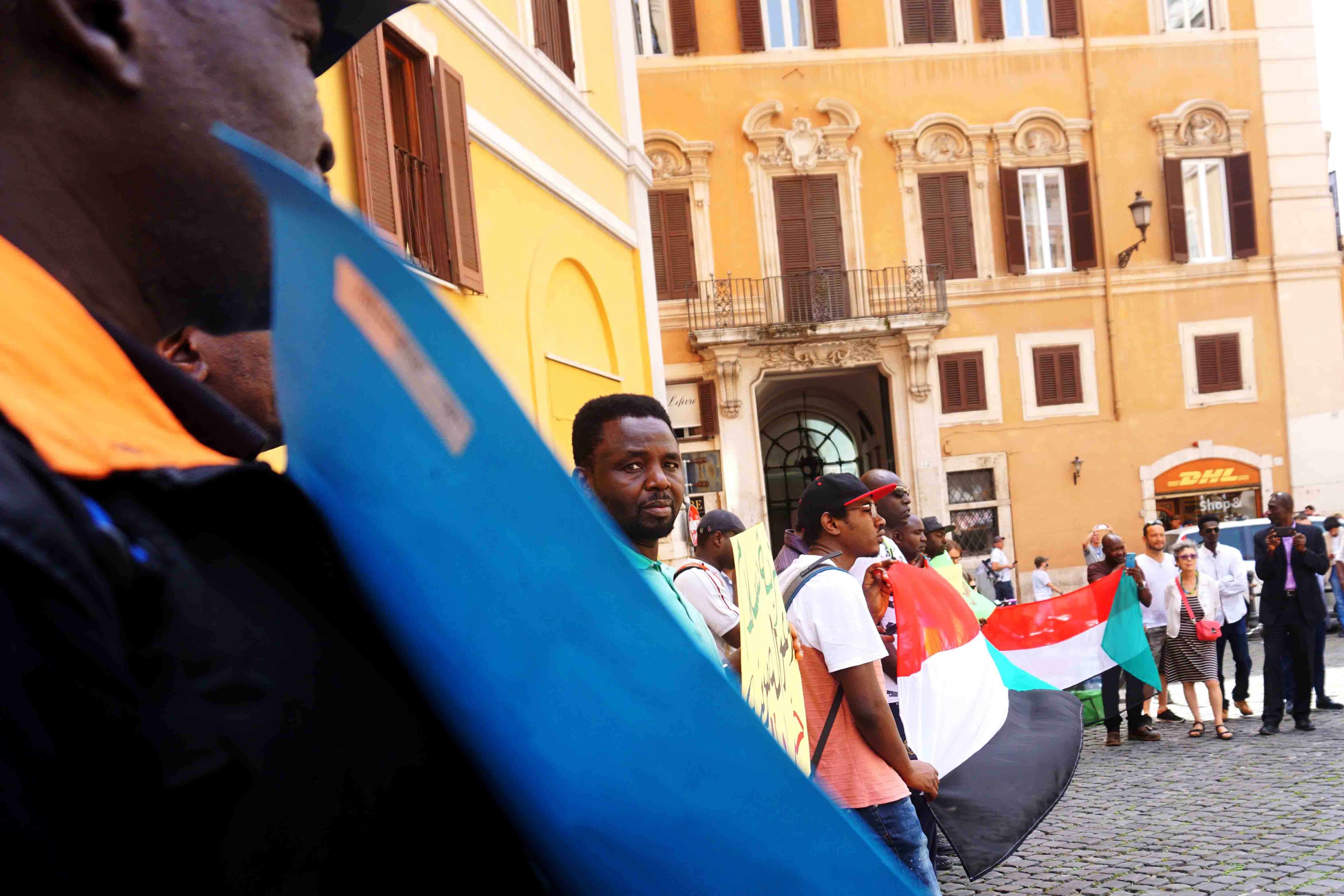 “Siamo qui a manifestare e a chiedere al Parlamento italiano di fare pressione sul Consiglio Militare” dice Adam Bosh in rappresentanza della Comunità dei Rifugiati Sudanesi a Roma “noi consideriamo il Consiglio Militare responsabile di tutte le violazioni dei diritti umani in Sudan”.La manifestazione ha voluto porre attenzione su molteplici realtà: anzitutto la necessità di fermare le barbarie che stanno portando alla morte di centinaia di persone e la necessità di intervento da Parte del Parlamento italiano, in secondo luogo l’assenza di divulgazione di notizie su suolo italiano e di un mutismo da parte del Governo.È intervenuta Lia Quartapelle Procopio, membro della Camera dei Deputati Italiani, la quale si è detta preoccupata e sconcertata. “Le notizie che arrivano dal Sudan sono preoccupanti e frammentarie ma soprattutto abbiamo poche ninformazioni da parte dei diplomatici di altri paesi europei. Non sappiamo cosa pensi il Governo italiano, non sappiamo se il Ministero degli Esteri si sia attivato e questo è molto preoccupante. Stasera presenterò una interrogazione durante la seduta parlamentare per sapere cosa pensa il Parlamento di ciò che sta accadendo e per denunciare i morti, le sparizioni, la repressione e l’incarcerazione dei leader della protesta democratica. Noi siamo una democrazia e come democrazia dobbiamo essere vicini a tutti quelli che lottano perchè non soccomba, per la libertà e la pace. Quello che sta facendo la giunta militare in Sudan è vergognoso e va condannato dal nostro paese”.Concorda l’onorevole Stefano Fassina, sceso in piazza per accogliere le richieste dei manifestanti e deciso ad interrogare anch’esso i parlamentari. “Bisogna far sì che venga aperto un percorso democratico in Sudan che eviti bagni di sangue come quelli che in questi giorni si sono verificati. Porteremo avanti ed insieme questa battaglia”.Se la frammentarietà delle notizie è imputabile al fatto che dal 3 giugno il paese non ha accesso ad Internet e di conseguenza è difficile ricevere testimonianze dirette, il mutismo governativo italiano è inspiegabile. Come ha ben sottolineato Yasmina Accardo di “Lasciateci Entrare”, “quello che sta accadendo in Sudan è anche colpa nostra” e ricorda come la fornitura di armi che vengono quotidianamente utilizzate nel continente africano provengano anche dal nostro Paese.Sarà questa una delle tante motivazioni che spinge il Governo a tacere su una emergenza umanitaria di tale portata?Altre voci che nel corso della manifestazione hanno espresso la propria solidarietà al popolo sudanese sono state l’Unione Sindacale di Base (USB) ed i giornalisti Marco Lombardo e Abderra Hmane de “La Comune”.