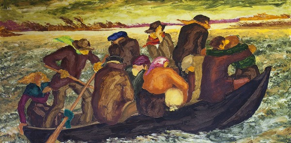 Giovani al fiume con barca- Arnaldo Bartoli