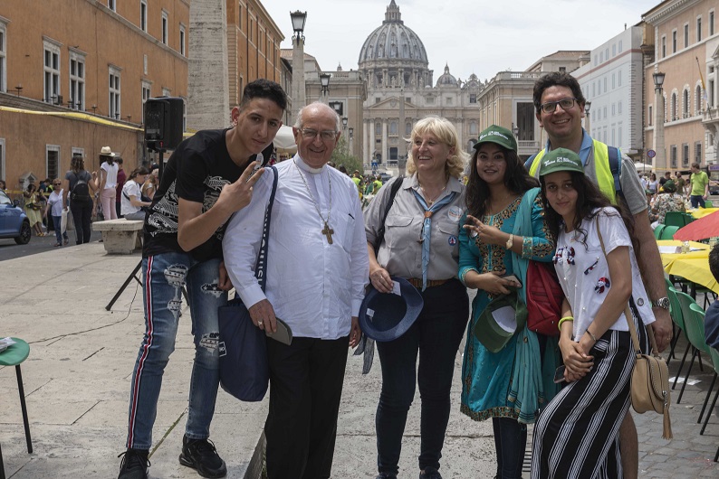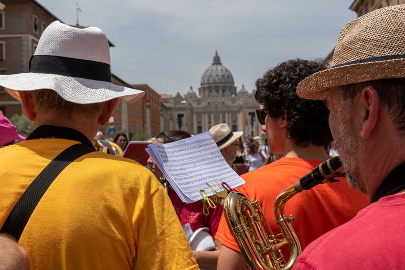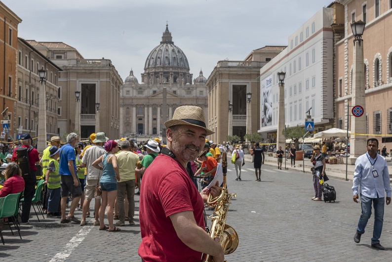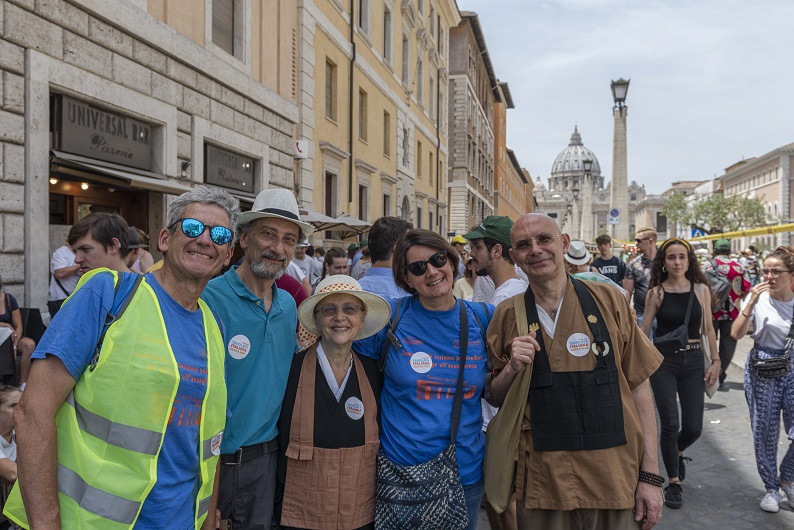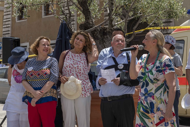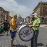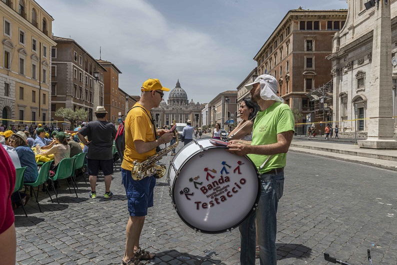 Il caldo torrido della giornata non ferma le persone che arrivano numerose: l’organizzazione impeccabile del FOCSIV, d’intesa con MASCI (Movimento Adulti Scout Cattolici Italiani) e Municipio I Centro Storico, accoglie tutti con distribuzione gratuita di cappellini e di acqua.