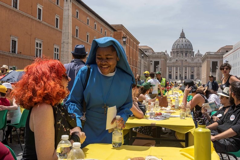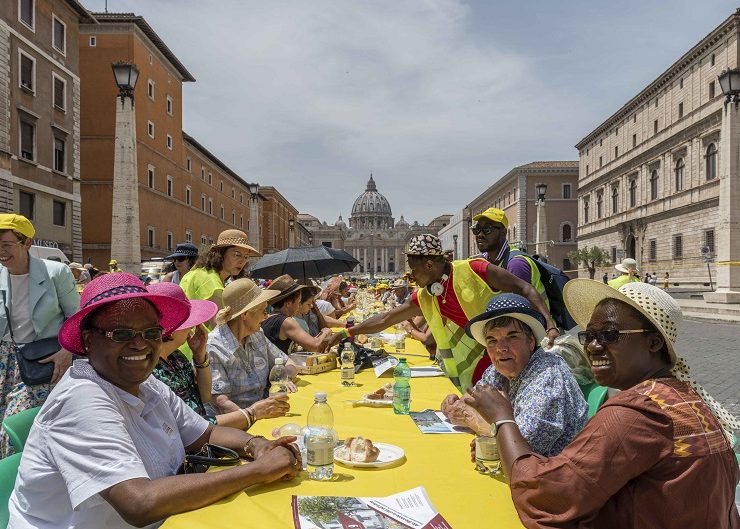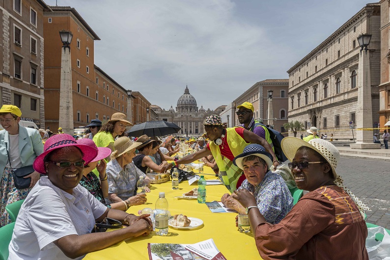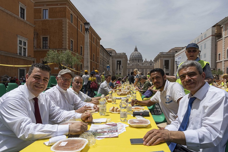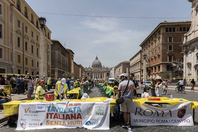 Via della Conciliazione torna a trasformarsi, ospitando una lunga tavolata che accoglie tutti vincendo ogni disuguaglianza. Sabato 15 giugno dopo l’esperienza di ottobre della “Tavolata romana senza muri”, ecco la “Tavolata italiana senza muri” perché, come dichiarato dagli organizzatori, “assistendo alle prime conseguenze negative del Decreto Sicurezza crediamo che sia più che mai importante tornare a parlare con e tra le persone e che anche il semplice gesto di condividere un piatto di pasta seduti insieme intorno allo stesso tavolo possa servire a ricreare un nuovo modo di pensare l’altro”.