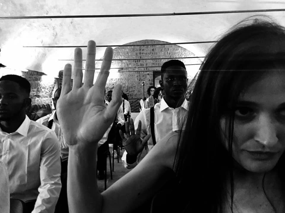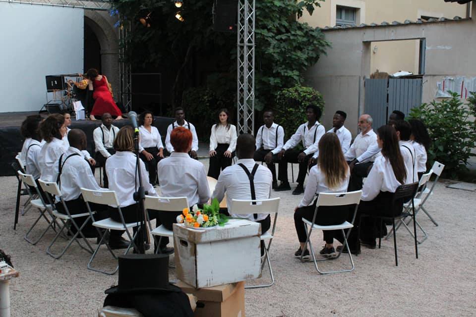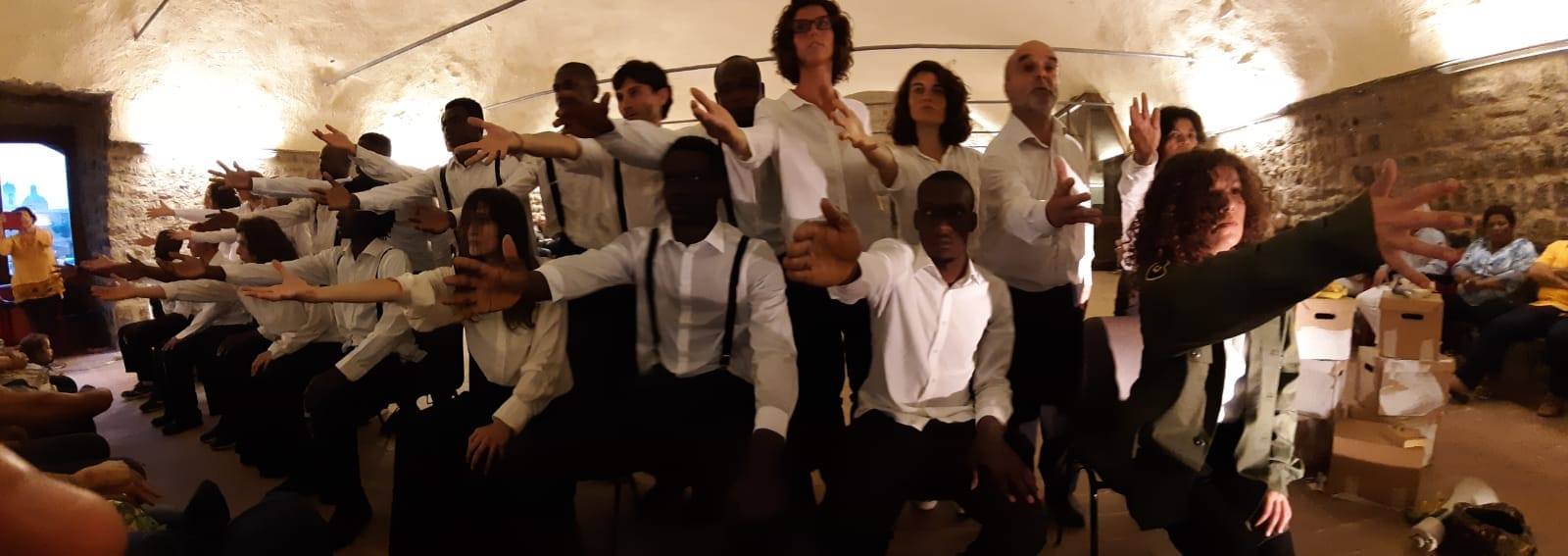 Martedì 16 luglio, il cortile della Casa Internazionale delle Donne si è riempito di luci, suoni, gesti, parole e corpi in movimento che hanno raccontato viaggi e traiettorie di migranti.“Africa Twist” è uno spettacolo teatrale, risultato di nove mesi di laboratorio condotti dal regista Marco Paparella con Iris Basilicata. Lo spettacolo è stato creato durante il laboratorio Anatta della Regione e della Presidenza del Consiglio – Politiche giovanili, e ArteStudio, associazione culturale che lavora nel campo artistico e teatrale da più di trent’anni, e diretta dal regista, attore e autore Riccardo Vannuccini.ArteStudio si pone l’obiettivo di contribuire all’integrazione all’interno della società delle fasce più deboli attraverso gli strumenti offerti dall’attività artistica. Diversi sono i progetti nati con questo scopo: il “Teatro del Rammendo”, dedicato principalmente ai disabili mentali e cittadini della periferia romana; il “Teatro a Righe”, rassegna che si svolge a Regina Coeli ed etichetta con la quale vengono indicati la serie di lavori che vengono svolti all’interno del mondo penitenziario; e il “Teatro in fuga”, progetto dedicato alla questione delle migrazioni e delle migrazioni forzate. Questo progetto si realizza sia in Italia, nei centri d’accoglienza per richiedenti asilo, sia all’estero in zone di guerra come Palestina, Libano, Giordania, Iran.