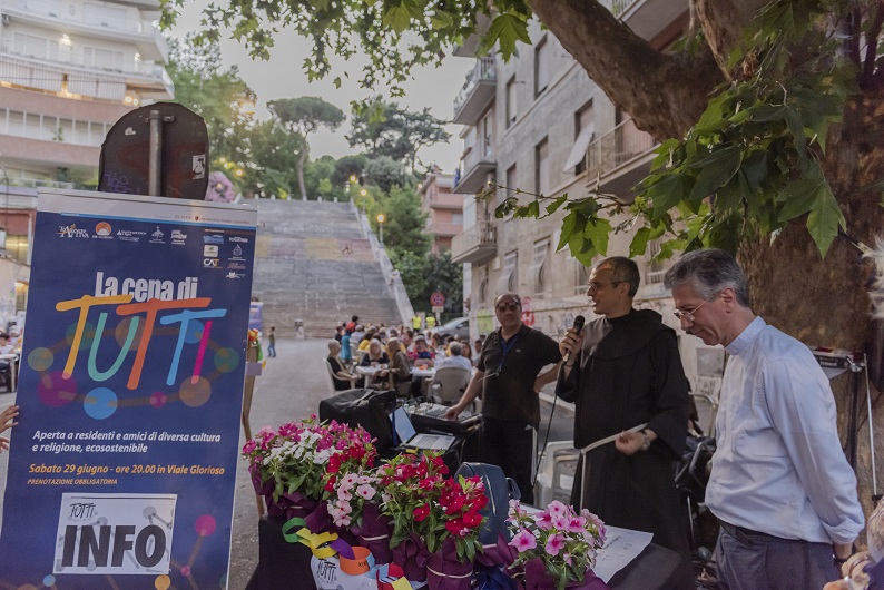 “La cena di tutti” sabato 29 giugno ha riunito a tavola più di 200 persone di diversa cultura e religione: francescani, tibetani, buddisti e rappresentanti delle istituzioni a cena per stare insieme e conoscersi nel rispetto di tutti.
