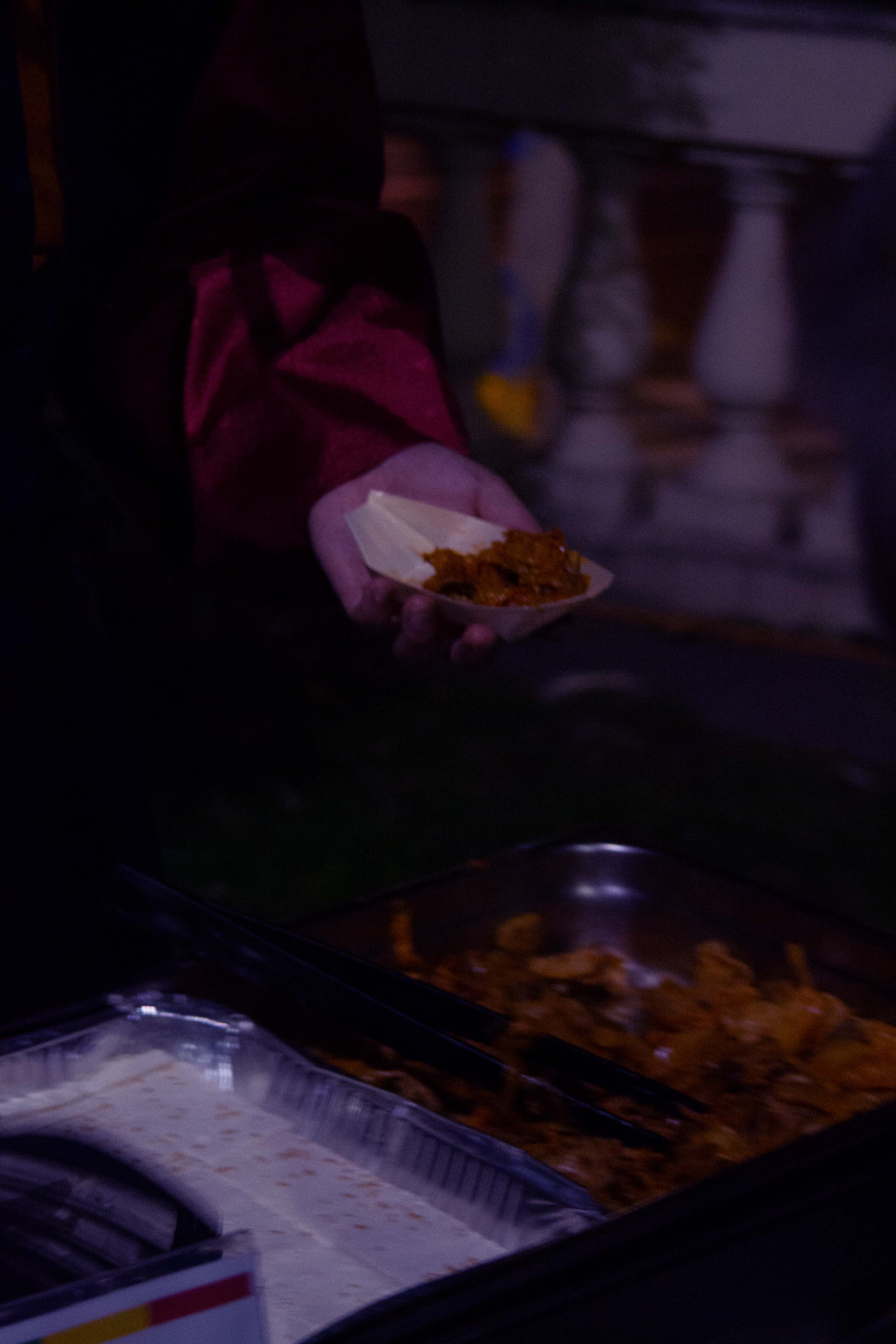 Attraverso le varie attività, si vincevano dei gettoni che potevano essere spesi per assaggiare i molti piatti tradizionali che venivano serviti in giardino. C’erano diversi piatti: Tteokgalbi, una ricetta a base di macinato di costine di forma simile allo gnocco di riso coreano, Tteok, ma fatto con costine,Galbi; Jumeokbap, letteralmente “pugno di riso” o i Dubu-kimchi, cavolo cinese fermentato, ricco di vitamine, e con del tofu come accompagnamento.