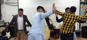 Una realtà, quella della comunità afghana, complessa e ancora sconosciuta ai più. Una realtà che le donne del progetto “Perfetto Migliorabile”, realizzato dalla Cooperativa Sociale Be Free, hanno voluto osservare in qualità di giornaliste all’interno del corso tenuto dalla redazione di Piuculture. “Mi ha incuriosito il senso di appartenenza di questa comunità”, commenta Brigida. “L’espressione che mi è piaciuta di più è stata quella in apertura: Benvenuti a tutti i colori“, aggiunge Anna.Paola, del corso di giornalismo, a caccia di un’intervista“È stata una festa colorata, è stato bello vedere insieme la comunità afghana con quelle africane. Penso che abbiano chiaro il concetto: l’unione fa la forza“, dice Paola.Le “inviate speciali” di Piuculture hanno lavorato come un vero e proprio team di redazione: dopo un’accurata preparazione, hanno preso macchina fotografica e taccuino e sono scese in campo, ognuna per documentare uno specifico aspetto della comunità afghana. Nelle sale della Casa delle Culture hanno osservato, fotografato, ascoltato, fatto interviste ai presenti, per trarre più notizie possibili e “portare a casa” il loro articolo. Hanno potuto osservare una comunità a loro sconosciuta, forse difficile da raccontare: “Si è percepito il senso di accoglienza, ma avrei preferito vedere più donne, visto che mi sarebbe piaciuto scrivere un articolo sulle mamme e i figli della comunità”, spiega Leila, che ha documentato l’attività della giornata dedicata ai bambini. “Credo che le persone che erano lì avessero voglia di raccontare la loro storia, il loro viaggio. Io volevo cercare più notizie possibili, ma avevo paura di distoglierli dal loro momento di festa”, conclude Paola.Solo quando viene annunciata la musica, la festa può davvero iniziare: ritmi afghani, così insoliti ma coinvolgenti, abbracciano la sala e tutti si lanciano nelle danze. In attesa della cena tradizionale, molti giovani afghani si salutano, alcuni non si conoscono e socializzano, parlando in pashtun. C’è chi, come Shaimir, è arrivato appositamente da Napoli dopo aver saputo della festa sul gruppo Facebook della comunità afghana: “Non conosco nessuno, ma volevo venire a parlare con i miei connazionali qui a Roma”.