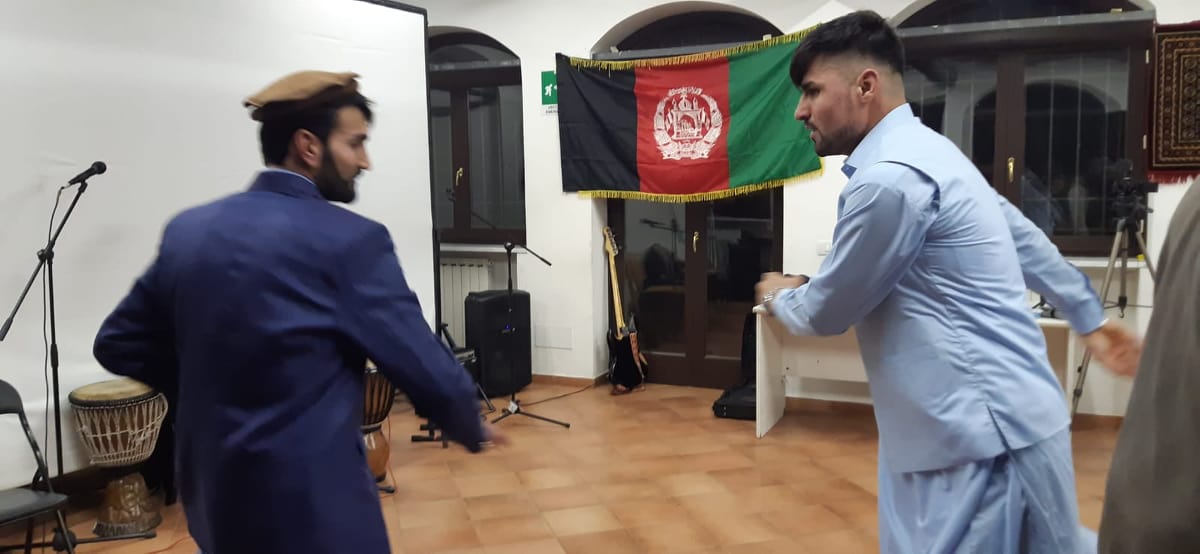 In Italia gli afghani residenti sul territorio sono 11.300; 1.400 risiedono a Roma, secondo i dati ISTAT aggiornati al 2019. “Cosa sanno gli italiani di noi? Siamo vittime di stereotipi. Vittime di guerra oppure terroristi. L’Afghanistan è una terra ricca di cultura e tradizioni antiche, ma in Italia si sa pochissimo di noi”. Shadam, mediatore culturale, interviene al discorso di apertura. “Faccio molti incontri nelle scuole per parlare di cultura afghana. Una volta ero in una scuola siciliana, dopo qualche minuto di conversazione dissi a una maestra da dove provenivo e lei non riusciva crederci. La sua idea dell’afghano era tutt’altra e nei suoi canoni non corrispondeva alla mia immagine”.“Ritmiamo con la comunità afghana”: il discorso di apertura con i referenti della comunità“È molto difficile vivere qui. Appena arrivato, mi trovavo senza documenti, senza assistenza. Ho dormito per molto tempo in strada, vicino la stazione a Piramide. Ma ora sono in piedi”, dice Shadam sorridendo e salutando la sua neosposa tra il pubblico.Una storia di dolore che si trasforma in coraggio accomuna Shadam a Syed Hasnain: “Sono passati 13 anni da quando, attaccato sul fondo di un tir, sono arrivato in Italia, a Benevento. Dopo diverse notti per strada, un italiano, Carmine, mi ha portato nella sua pizzeria e mi ha dato da mangiare. Mi ha parlato di un’associazione a cui potevo rivolgermi per chiedere aiuto. Da lì la mia vita è cambiata. A distanza di anni, posso dire che ho trovato molti Carmine lungo il mio percorso. Questa è l’Italia bella che io conosco“.Hasnain è oggi presidente di Unire, Unione Nazionale Italiana per i Rifugiati ed Esuli, nata nel 2019, per informare e sensibilizzare i rifugiati al fine di favorire il confronto con le istituzioni pubbliche e private, italiane ed europee, e trovare insieme delle soluzioni in materia di diritto d’asilo, accoglienza e inclusione.“Mi sono laureato facendo una ricerca sulla partecipazione dei rifugiati nei processi decisionali. Mi sono chiesto: si parla sempre di migranti e stranieri, ma questi influenzano le politiche migratorie? Vengono consultati dalla politica? La risposta è stata no. Da qui l’idea della nostra associazione di sensibilizzare i rifugiati sui loro diritti e sul fatto che dobbiamo essere protagonisti della nostra narrazione, altrimenti saremo sempre sottomessi alle decisioni degli altri”.Nei discorsi di apertura alla festa, i rappresentanti della comunità afghana di Roma, davanti a un pubblico numeroso di afghani, italiani e stranieri provenienti da diversi paesi africani, hanno voluto ribadire che le radici sono la cosa più importante, e che integrarsi in Italia non vuol dire doverle perdere. Per gli afghani arrivati da poco in Italia, sono state presentate realtà associative che si occupano di servizi rivolti ai migranti. Un esempio è Binario 15, che nasce nel 2011: il nome dell’associazione di volontariato deriva proprio dal binario 15 della Stazione Ostiense, crocevia in quegli anni di migliaia di profughi fuggiti dall’Afghanistan in guerra. “Oggi uno dei nostri progetti è rivolto alle donne afghane che sono arrivate in Italia con il ricongiungimento familiare“, racconta Lorena Di Lorenzo. “Le aiutiamo a trovare accesso ai servizi sul territorio e organizziamo attività di gruppo, anche con i loro bambini, per favorire l’empowerment e contrastare l’isolamento”.