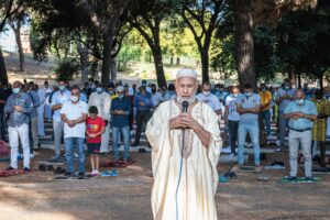 Venerdì 31 luglio 2020 è stata una data importante per comunità musulmana: la festa del Sacrificio, uno dei momenti più significativi per la religione islamica, ha riunito, dopo i mesi di isolamento dovuti all’emergenza Covid-19, donne, bambini e uomini che si sono ritrovati per la preghiera nello spazio aperto del parco Madre Teresa di Calcutta a Centocelle.