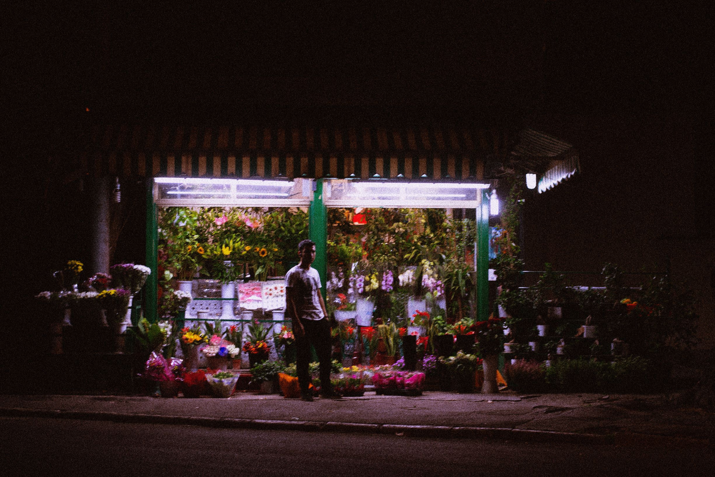 Tra via del Commercio e via Ostiense, sullo sfondo grigio del Gazometro risalta il verde delle piante, l’arancione dei girasoli e il giallo dei tulipani, Maher è uno dei tanti fiorai che popolano le strade di Roma. Aperto dalle 7 alle 20, da qualche anno ha cambiato i suoi orari: “prima c’era sempre qualcuno anche la notte, ora ho smesso: comprano meno fiori o ci sono meno innamorati, non lo so”.