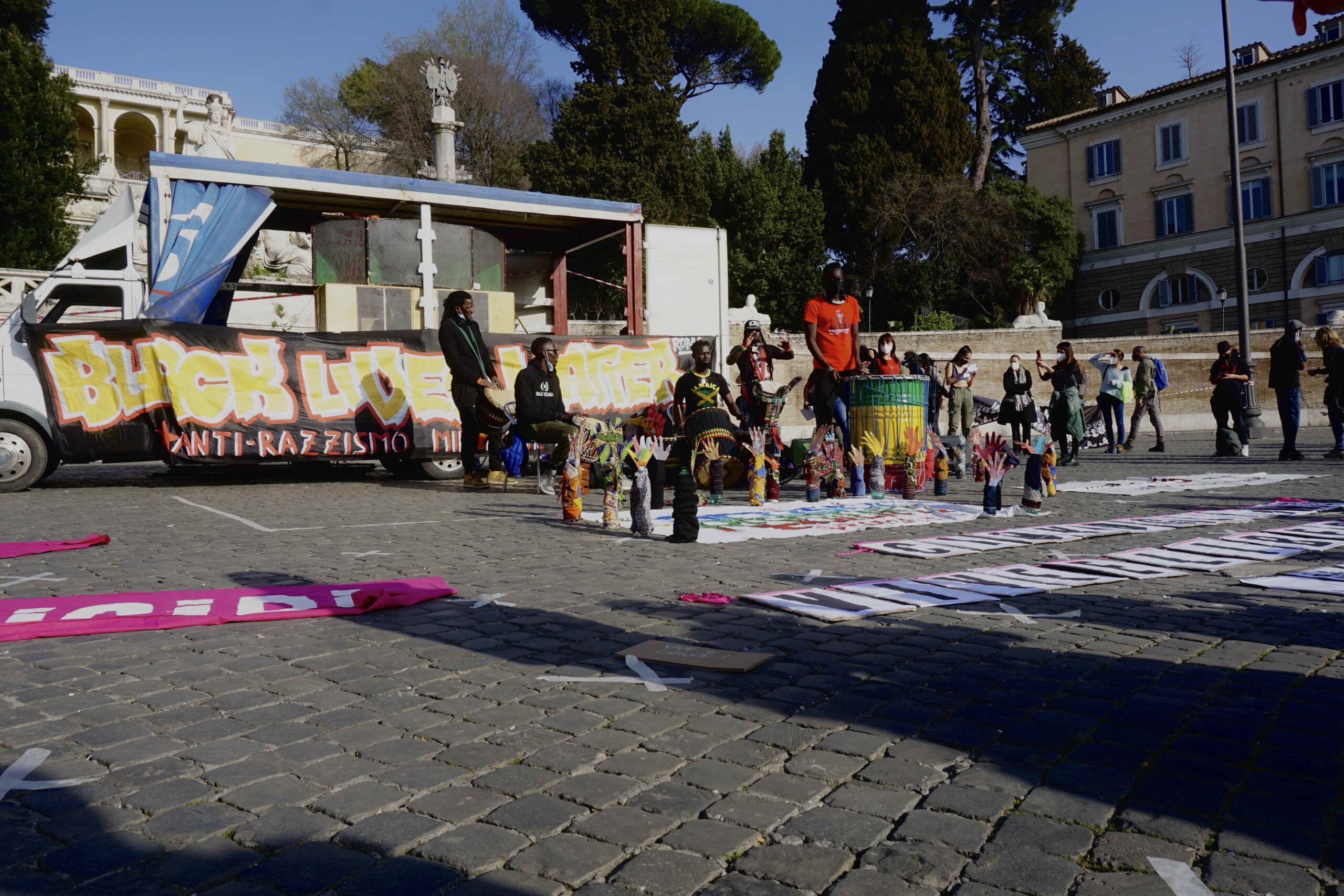 In Piazza del Popolo il 28 febbraio erano circa un centinaio i partecipanti tra attivisti, manifestanti e curiosi. A solo un giorno dalllo Zero Discrimination Day, ricorrenza mondiale contro tutte le discriminazioni, la manifestazione si è svolta parallelamente in altre città italiane e non solo. “Siamo scesi in piazza per manifestare la nostra opposizione a tutte le discriminazioni“, ha commentato un attivista di BLM, “questa è una giornata emblematica e BLM ha cercato di raccogliere le vertenze di tutte quelle associazioni che si battono contro le discriminazioni di razza, genere, politica e religione”. Non solo razzismo: si è parlato di clima, salute, questioni di genere in particolare con le donne di Lucha y Siesta e di Non Una di Meno. “Non è un paese per donne, questo” ha commentato un’operatrice del rifugio per donne vittime di violenza. “Questo movimento di piazza deve servire a denunciare ma anche a pretendere con la forza un’alleanza solidale che porti ad un cambiamento radicale. Pensiamo ad un mondo senza confini ma solo orizzonti e ci auguriamo che questa piazza arrivi lontano”. Le proteste di piazza delle attiviste femministe continueranno il prossimo otto marzo con lo sciopero globale feminista e transfemminista.
