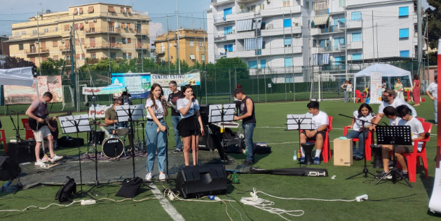 Sotto un cielo terso i bambini delle varie associazioni, a crocchi, giocano scorrazzando sul prato verde. Al centro del campo di calcio una band, composta dai ragazzi di CivicoZero, suona e canta una musica dal ritmo incalzante. Gli stand allestiti dalle associazioni vengono a tratti scossi dallo sferzare del vento.