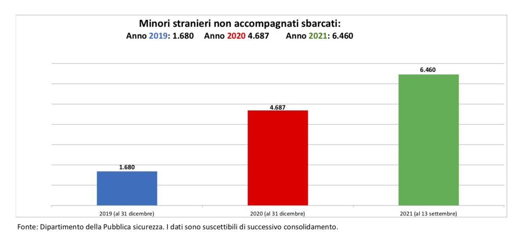 Anche i minori stranieri non accompagnati sono in aumento: se nel 2019 erano stati 1.680, nel 2020 il loro numero è cresciuto a 4.687 e dal 1 gennaio al 20 settembre del 2021 è salito a 6.460. Recentemente Intersos ha denunciato in un comunicato stampa l’improvviso aumento di minori soli in transito nella Capitale nei pressi delle principali stazioni ferroviarie, esclusi dal sistema dell’accoglienza, privi di riparo notturno ed esposti a molteplici rischi di abuso e sfruttamento.