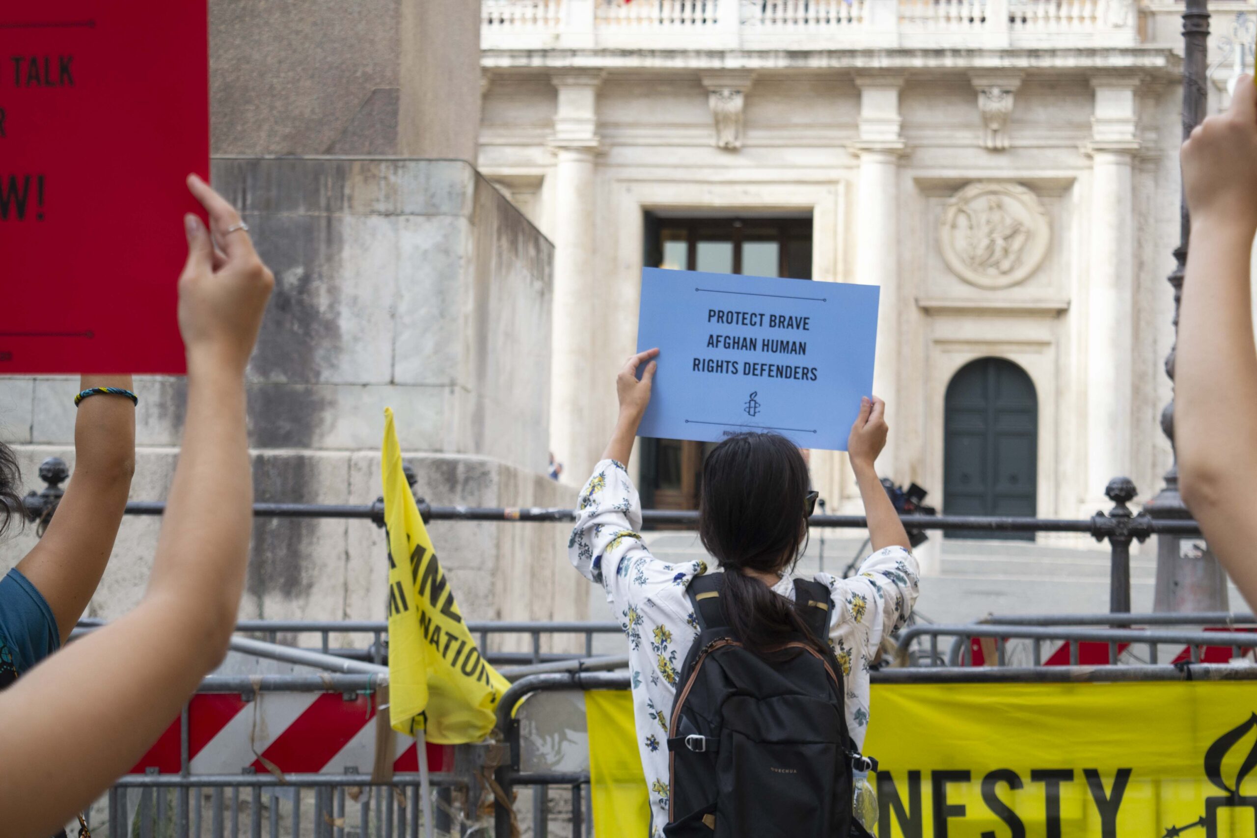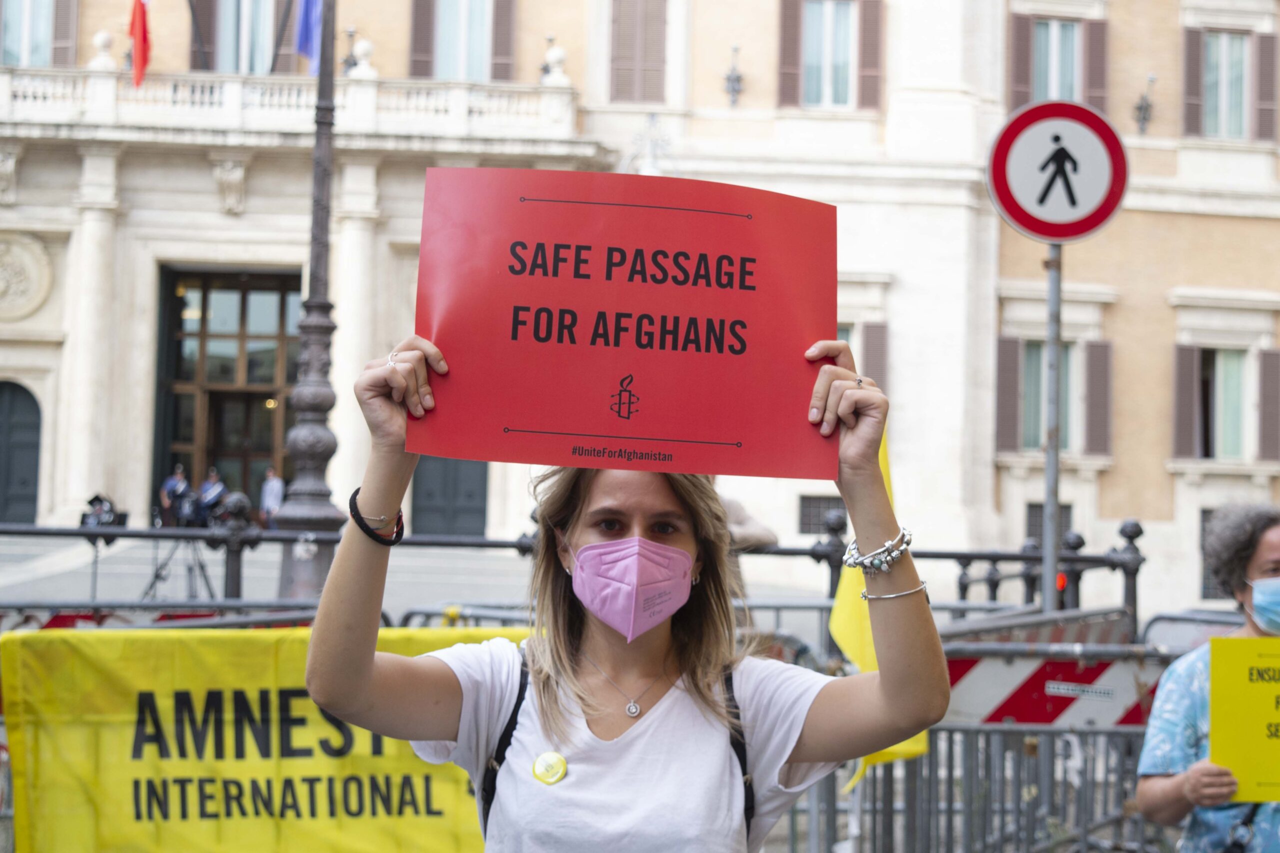 Almeno una cinquantina di braccia si sono alzate oggi in piazza a Montecitorio, a reggere cartelli ma soprattutto a supportare una richiesta diventata ormai improrogabile: Amnesty International Lazio con le associazioni partecipanti a “Insieme per l’Afghanistan”, tra cui Libera Contro le Mafie, Nonna Roma, Piuculture e Non Una di Meno si sono ritrovate davanti al Parlamento, a distanza di un mese dalla seconda presa di potere da parte dei talebani in Afghanistan, a sollecitare le istituzioni nella gestione della crisi umanitaria afghana. L’iniziativa si è svolta in maniera capillare in dieci città italiane, alcune in differita, e si concluderà a Milano con un convegno nazionale.