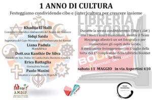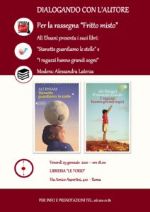“Nell’evento svoltosi nel 2021 ci siamo concentrati sulla cultura marocchina e, in particolare, sull’aspetto religioso. Sui testi sullo stato islamico e sulla religione musulmana. Abbiamo raccontato la storia di un ragazzo immigrato che descriveva il percorso che dalla Libia lo ha portato fino all’Italia. La storia é racchiusa nei due libri di Alì Eshami: “Stanotte guardiamo le stelle” e “I ragazzi hanno grandi sogni”. Il primo lnarra del viaggio, il secondo dell’arrivo in Italia e delle difficoltà a comprendere la lingua e integrarsi nel nuovo paese. Racconti che andrebbero letti nelle scuole. Narrano una storia di avversità, guerra ed esclusione. Il protagonista deve decidere che fare della propria vita. é una storia forte, struggente ma molto bella. é un tema molto affrontato in libreria”.