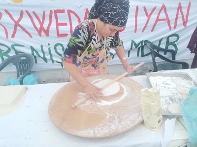 I vari ospiti che si avvicendano sul palco spiegano l’origine del Newroz e quanto importante sia stata questa festa, anche nel recente passato. Il Newroz inizia con una ribellione degli assiri, nel 600 A.C. La festa trae cioè origine dalla storia di un popolo, quello persiano, che si libera dal giogo dell’oppressore. Kawa, un umile fabbro, guida la popolazione nello scontro con gli Assiri. I fuochi – accesi nelle varie montagne dove si trovavano i vari gruppi di persiani – fungevano da mezzo di comunicazione. Una volta che i persiani sconfissero gli assiri, i fuochi furono accesi per simboleggiare la vittoria.