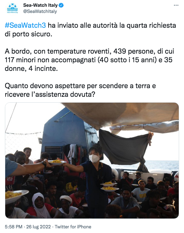 Fortunatamente è sempre molto attiva anche la presenza delle ONG in mare: 444 le persone salvate nel Mediterraneo centrale dalla Sea Watch in due giorni. Ma con l’aumentare degli arrivi appare sempre più critica la gestione dell’hotspot di Lampedusa che, nonostante i continui trasferimenti, a luglio è arrivato a “ospitare” quasi 2mila persone a fronte di una capienza massima di 350 individui.