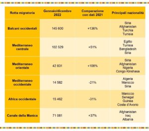 Rotte migranti: nel 2022 boom di attraversamenti illegali