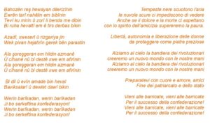 È così che un canto anarchico spagnolo della II Guerra mondiale, a sua volta derivato da un componimento socialista di inizio secolo, è diventato ai nostri giorni un inno dei combattenti curdi.