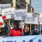 diversi manifestanti di origine straniera davanti a Santa Maria Maggiore a Roma