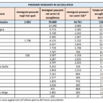 Migranti seduti a terra a Lampedusa un poliziotto in piedi e sullo sfondo il faro e il mare