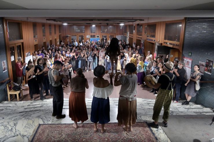 “Il festival è nato a Budapest dove si è tenuto dal 2017” spiega Spinella “nel 2022 c’è stata una prima edizione anche a Bucarest in Romania e quest’anno è arrivato a Roma. Abbiamo scelto, come sede del Festival, Spin Time che è una delle ultime occupazioni rimaste a Roma, molto importante, in quanto è stata, nel bene e nel male, al centro delle attenzioni delle istituzioni. È un vecchio palazzo dell’Inpdap, nei piani superiori abitano un centinaio di famiglie, provenienti da oltre 25 paesi diversi. Nel seminterrato si è creato un tavolo di un collettivo di persone, “il tavolo cultura” che da parecchi anni realizza attività teatrali, servizi di biblioteca, c’è un’osteria, una sala prove, spazi molto frequentati dall’ambiente artistico romano legato al teatro e alla musica”. La scelta di Spin Time come sede per il Festival è stata dettata sia dalla presenza del tavolo cultura di Spin Time costituito da professionisti del teatro, sia per “il simbolo che questo luogo rappresenta” spiega Spinella, “per il lavoro fatto dalla cittadinanza con la cittadinanza, un lavoro di accoglienza verso chi ha più bisogno, che è molto vicino a quello che abbiamo fatto negli anni con Rampa Prenestina. Personalmente anche io ho radici rom, mia nonna era rom, mio nonno pure, però io sono nato e cresciuto in condizioni di cittadino italiano normale, senza grandi problemi di documenti o di scolarizzazione. Nel volermi riappropriare di quelle che sono le mie radici familiari ho sentito il richiamo ad occuparmi di questa comunità che è parte delle mie radici”.