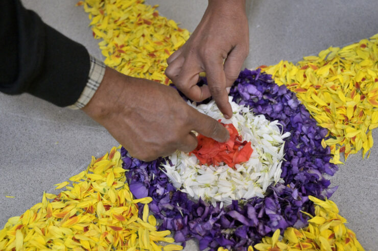 Dipavali non è solo una festa da passare con la famiglia, ma ha anche una funzione aggregativa molto forte. La festività dura cinque giorni “giorni scanditi da rituali e preparativi, tra cui la pulizia e la decorazione della casa e del tempio” prosegue Svamini Shuddhananda Ghiri, “la realizzazione dei kolam o rangoli, diagrammi colorati realizzati con fiori e polveri colorati, la preparazione di manicaretti tipici, lo scambio di doni e, non ultimo, l’accensione di file di luci in tutta la casa, nei templi e nelle strade delle città”. Le pulizie e le decorazioni hanno una funzione “sono realizzate per accogliere l’arrivo di Lakshmi Devi, l’espressione femminile del Divino che sebbene sia senza nome e senza forma, Uno senza secondo, si esprime in molti nomi e aspetti ed è simbolo di prosperità sia materiale sia spirituale” spiega la monaca induista “Lakshmi Devi è invitata a entrare nella propria casa, emblema del proprio cuore, che deve essere quindi puro e ornato delle virtù migliori quali la gentilezza, la non violenza, la generosità”.
