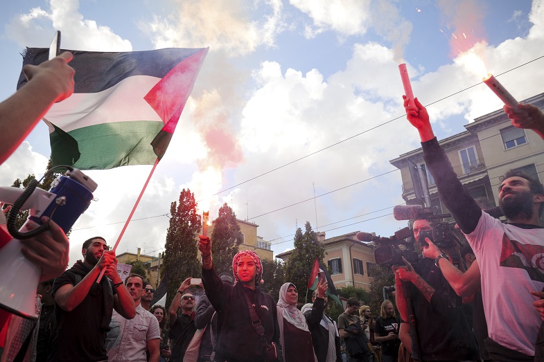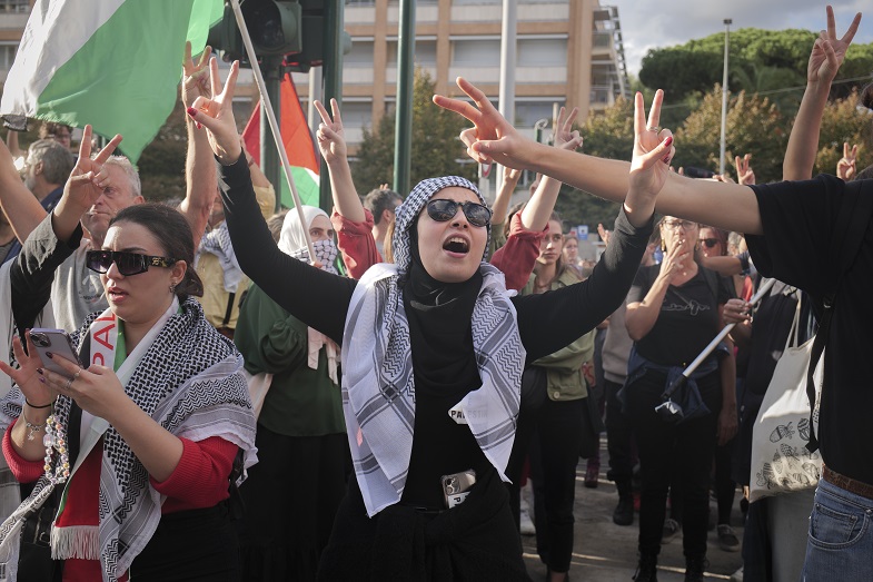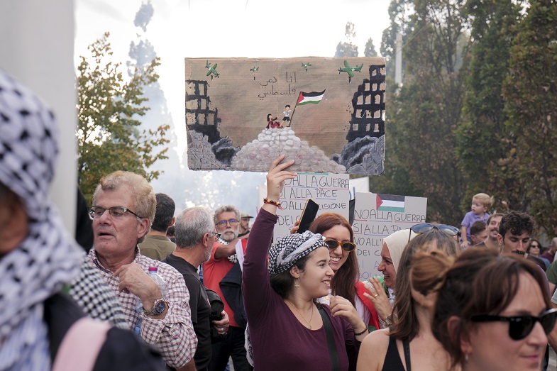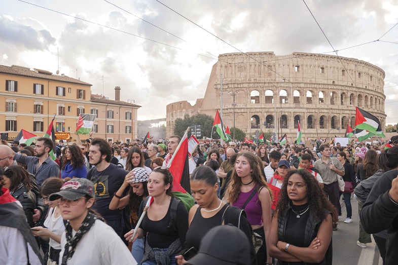 Con lo slogan “Contro la guerra, per una giusta pace” si è tenuta ieri pomeriggio, 28 ottobre, a Roma la manifestazione nazionale organizzata dalla Comunità palestinese di Roma e del Lazio.