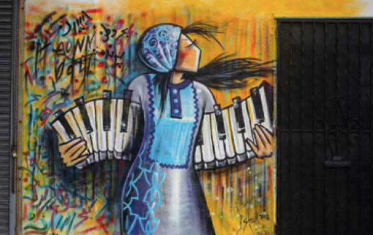 Per la locandina del convegno sono state scelte le immagini di un’artista afgana, Shamsia Hassani detta Shamsia (Teheran, 1988), graffitista e professoressa di scultura all’Università di Kabul, che nel 2021 è stata inserita dalla BBC nella lista delle 100 donne che si sono maggiormente distinte nell’anno.