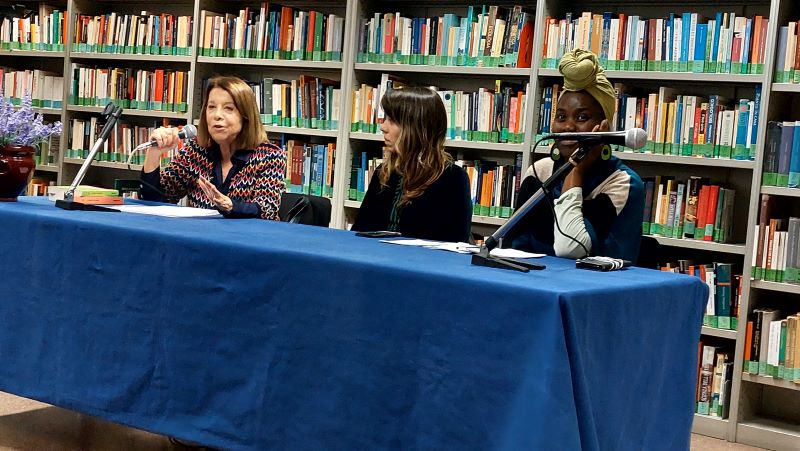 Luciana Burlin, coordinatrice della commissione del concorso DiMMi Roma 3- Nord-Est- nonché del circolo di lettura della biblioteca Ennio Flaiano, prima di presentare le sue ospiti:
