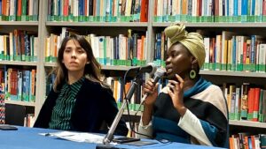 Paule é una bella ragazza che indossa orgogliosamente una sciarpa annodata sul capo, a coprire i capelli, alla maniera del suo paese d’origine, prendendo la parola durante l’evento, affermerà che, inizialmente, aveva provato un po’di scetticismo nei confronti del progetto. “Era il 2019, erano già anni difficili, in cui l’Italia metteva in campo politiche migratorie populistiche che creavano un immaginario collettivo tossico e violento intorno alle migrazioni. Volevo essere sicura che la mia storia non fosse affidata a piattaforme o canali che avrebbero alimentato ulteriori strumentalizzazioni, perciò prima di scrivere ho letto il volume che raccoglieva le storie precedenti e mi sono resa conto che non c’era stata alcuna mediazione tra i racconti delle persone e quello che era stato pubblicato. Erano le storie vere di vita.”