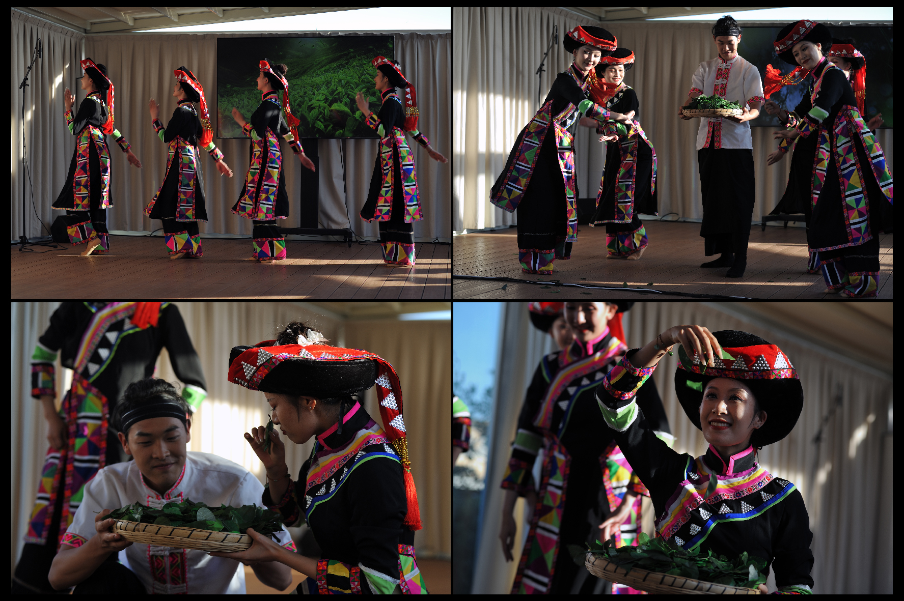 Un corpo di ballo, arrivato direttamente dallo Yunnan, si è esibito in danze tradizionali ed acrobatiche, testimoniando la varietà di usanze e costumi, diversi per forme, colori e materiali. La musica è stata poi protagonista, con l’intento di superare barriere e confini, e gli strumenti tradizionali a corda, simili a delle arpe orizzontali, hanno portato il pubblico “tra le montagne e le piantagioni, come il vento che porta la musica assieme al profumo del tè”. Con l’intento di sottolineare il connubio sino italiano, alla musica tradizionale della Yunnan, si è affiancata l’esibizione di musicisti italiani su alcuni brani della nostra tradizione e quella del soprano cinese Hongmai in tre brani del repertorio classico cinese e in un’aria napoletana.