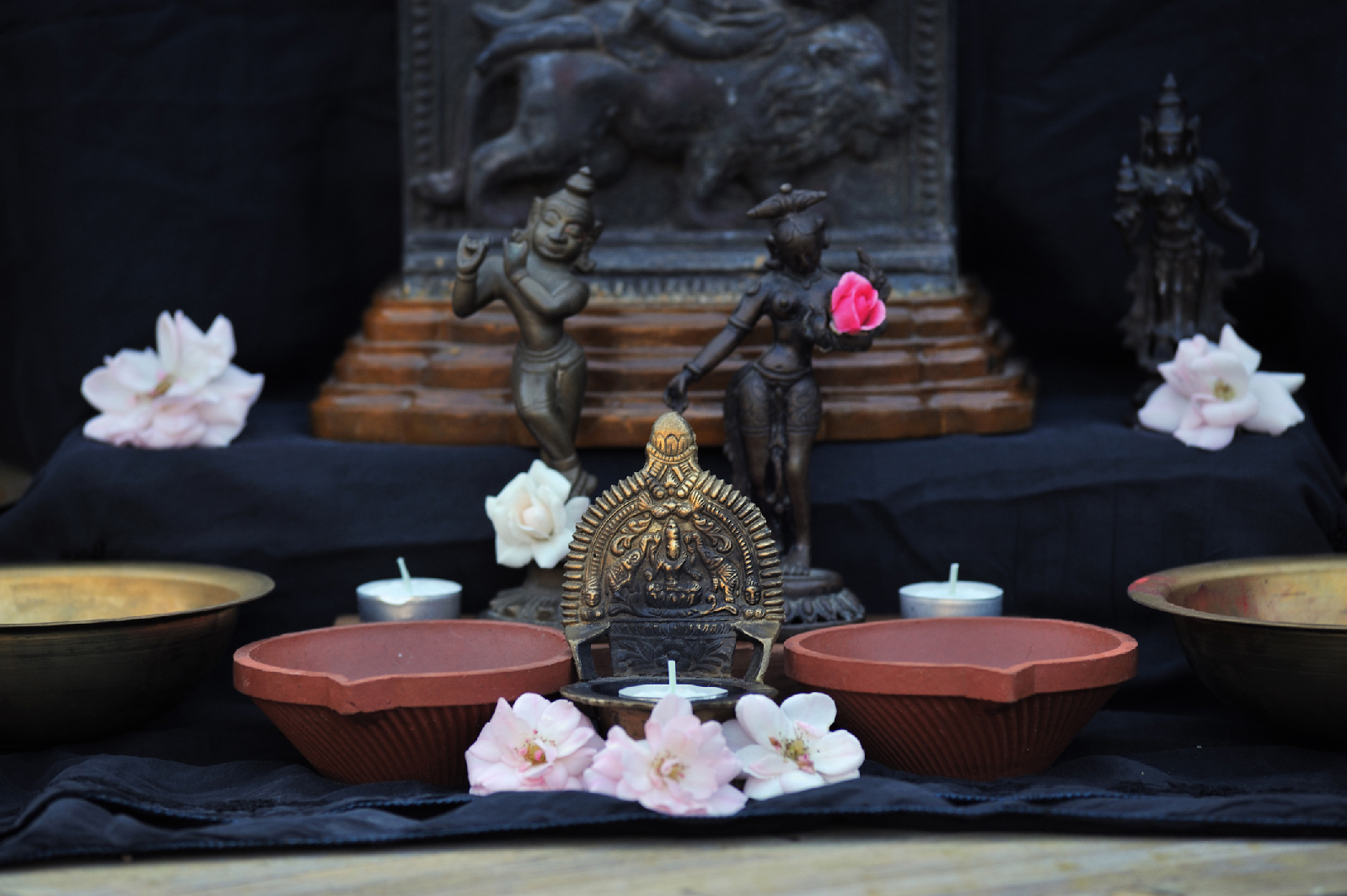 Enrica, arrivata dalla Calabria, vive a Roma dove insegna Yoga e fa la performer, mentre sistema le candele sul palcoscenico racconta “Lavoro nel settore dello spettacolo, mi occupo anche di arte circense. Ho letto l’annuncio di Ganga che invitava le danzatrici a partecipare ad un seminario finalizzato alla creazione dello spettacolo sulla femminilità e sulla preghiera e ho deciso di partecipare. Insieme a me c’erano altre danzatrici provenienti da altre parti del mondo: dall’India, dal Cile, dagli Stati Uniti, siamo state ospitate a casa di Ganga e abbiamo ballato nel suo studio e chiacchierato nel suo giardino. È stato molto bello incontrare tante persone diverse accumunate dallo stesso fine e dagli stessi interessi: l’amore per l’India e per la danza, intesa da Ganga come offerta spirituale agli altri e a Dio, ognuno al suo Dio.Mi auguro di poter continuare a collaborare con Ganga” conclude, mentre continua a preparare le lucerne e a spargere petali di fiori colorati.