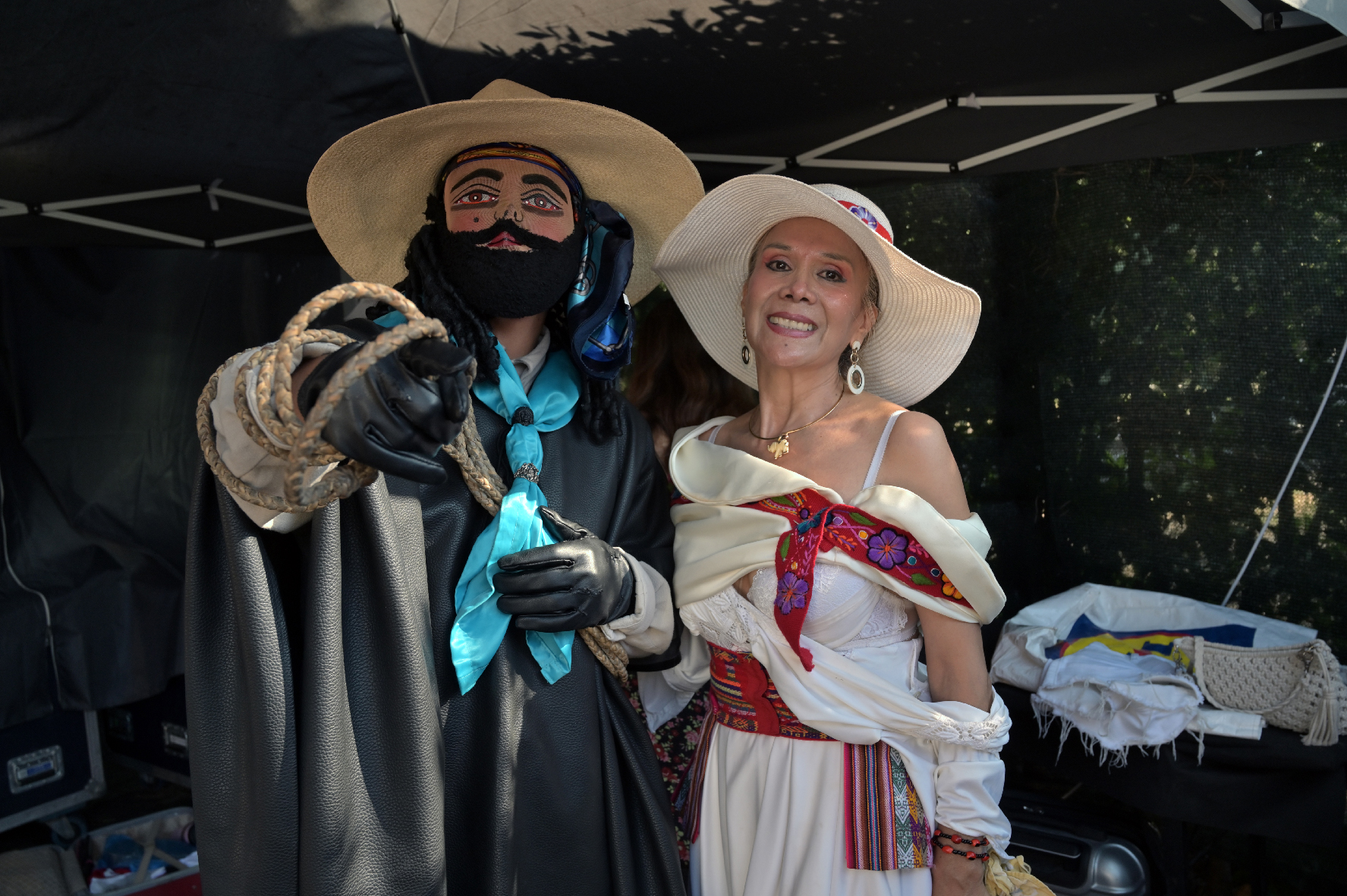 Ad accompagnare la sua voce ballando sul palco ci pensa un ragazzo vestito da Arriero Argentino, con un pesante costume di cuoio simile a quello di un cow boy, tipico della città di Aoca, ma indossarlo alle temperature estive di Roma comporta soffrire un caldo insopportabile.