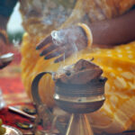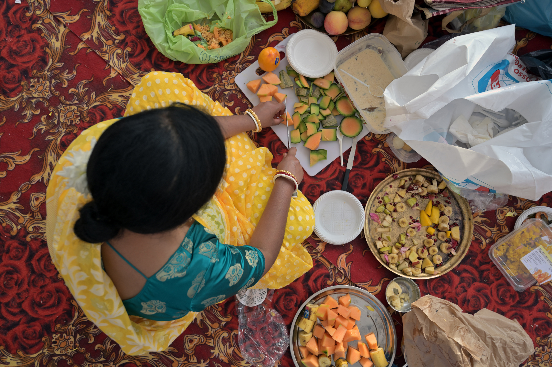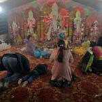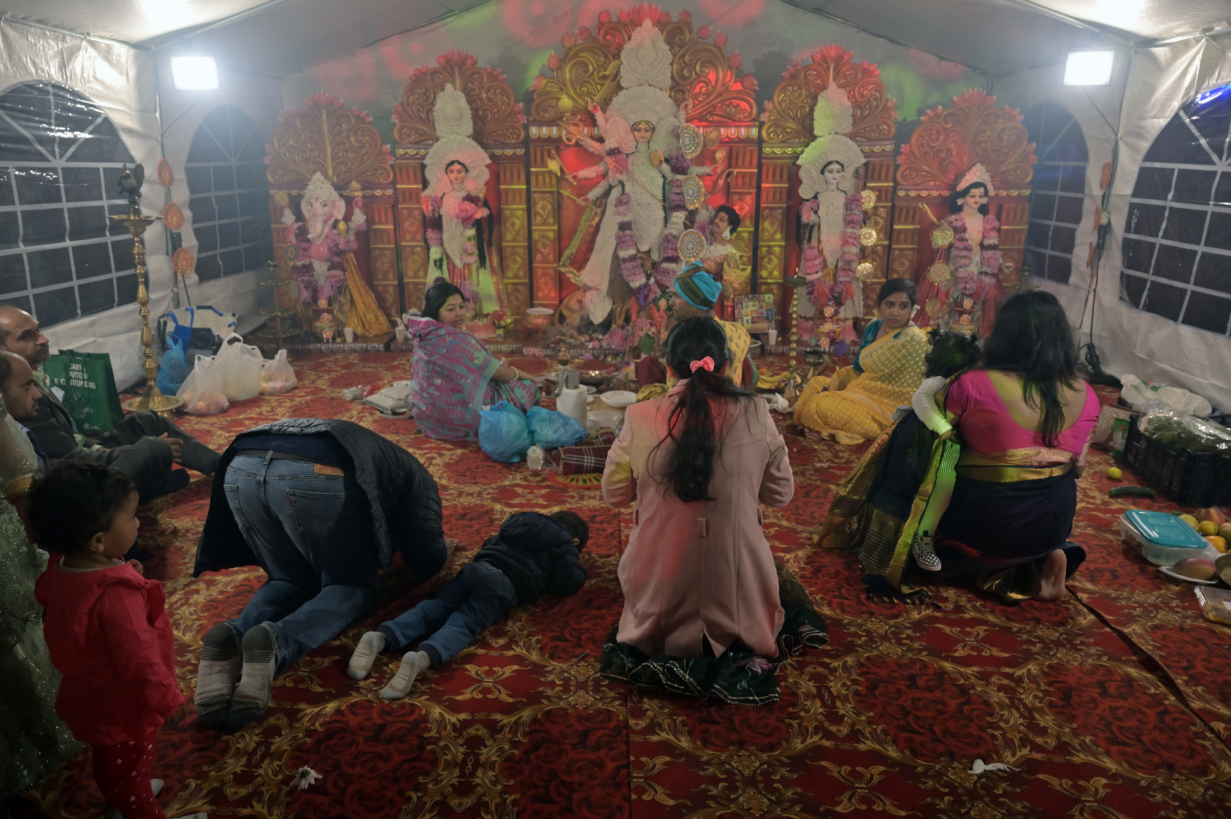 La Durga Puja, è stata la festività – tradizionalmente nota come la più importante nel mondo indiano – celebrata in occasione del festival. Durga è la dea della guerra che incarna la creatività femminile e che, secondo la mitologia induista, si reca nel mondo ultraterreno per sconfiggere le forze del male. In questi giorni di festa, ne viene celebrato il suo ritorno nel mondo terreno. Generalmente la dea viene rappresentata con otto o dieci braccia e munita di armi degli dei principali: lo scopo è esprimerne l’immensa forza divisa e la rapidità dell’azione. Sul luogo dello svolgimento di questi rituali ci sono i pandal: strutture provvisorie che vengono costruite nelle città e al cui interno si possono trovare quadri, sculture e fotografie che raffigurano la dea.