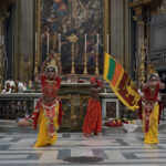 Canti spirituali, pietanze srilankesi e danze tradizionali. I passi due ballerine che, leggiadre come piume, danzano su note musicali cingalesi: i capelli lunghi e gli abiti colorati di rosso e arancione fanno da contrasto con il luccichìo dell’oro, utilizzato per i ricami. Il tutto inserito in un quadro suggestivo tra sculture di Antonio Canova e affreschi de il Baciccio. È questa la Festa dei Popoli che si è tenuta domenica 27 ottobre alla Basilica dei Santi dei XII Apostoli a Roma e che ha voluto celebrare una ricorrenza religiosa della tradizione srilankese. I festeggiamenti si sono svolti negli spazi della Basilica e nel chiostro interno e si sono articolati in diversi momenti.