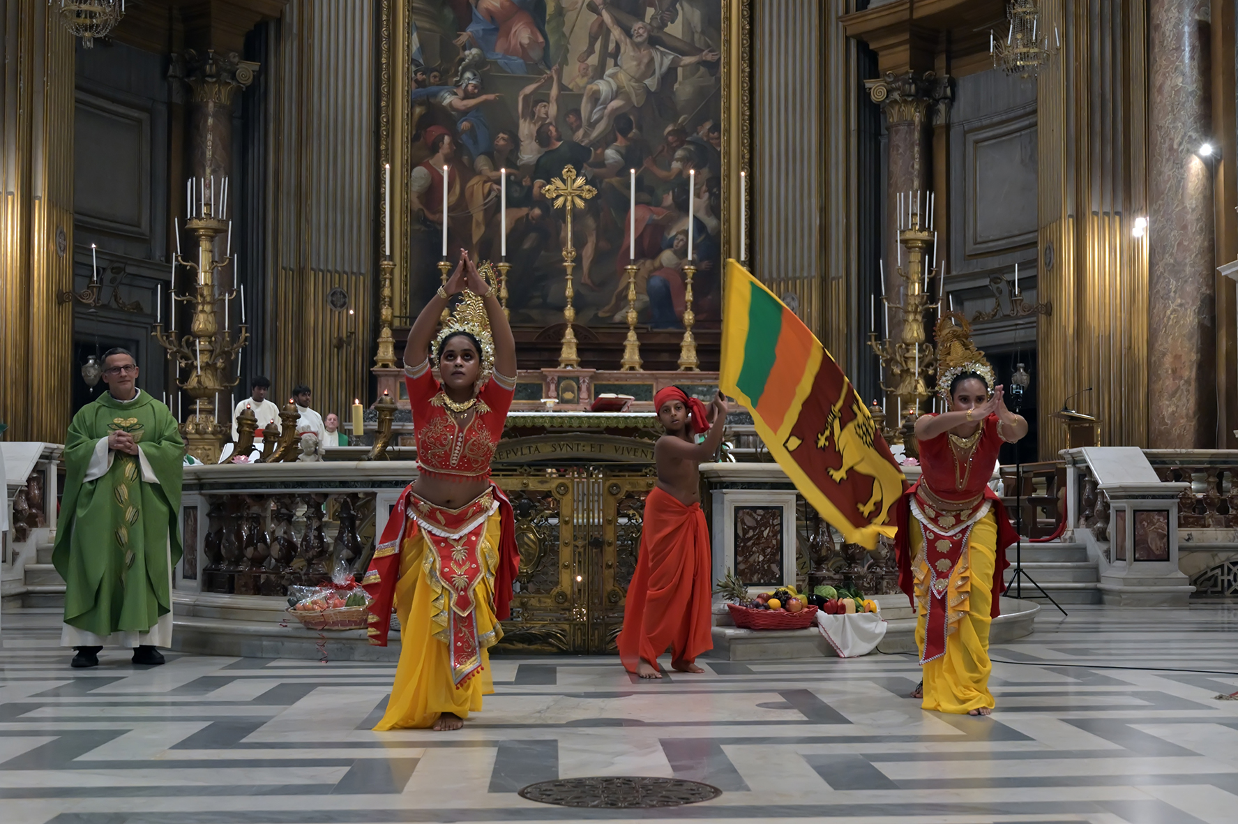 Canti spirituali, pietanze srilankesi e danze tradizionali. I passi due ballerine che, leggiadre come piume, danzano su note musicali cingalesi: i capelli lunghi e gli abiti colorati di rosso e arancione fanno da contrasto con il luccichìo dell’oro, utilizzato per i ricami. Il tutto inserito in un quadro suggestivo tra sculture di Antonio Canova e affreschi de il Baciccio. È questa la Festa dei Popoli che si è tenuta domenica 27 ottobre alla Basilica dei Santi dei XII Apostoli a Roma e che ha voluto celebrare una ricorrenza religiosa della tradizione srilankese. I festeggiamenti si sono svolti negli spazi della Basilica e nel chiostro interno e si sono articolati in diversi momenti.