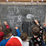 “Dal 2022 stiamo accogliendo i profughi della grande guerra, ovvero quella di cui si sente parlare adesso, perchè in realtà la guerra va avanti dal 2013 e la maggior parte sono bambini che hanno solo la mamma, sono meno quelli che hanno entrambi i genitori e quasi inesistenti quelli con la rete familiare, nonni, zii ecc.” racconta Tetyana, direttrice della scuola. “La nostra associazione accoglie nuovi ragazzi ogni settimana, perchè accogliere profughi non è la stessa cosa di accogliere immigrati. Un gruppo di immigrati significa avere una quantità di soci permanente, i profughi invece cambiano in continuo, vengono fanno un percorso e poi ripartono.” Ed infatti il 70% dell’associazione attuale è composta dalle nuove famiglie arrivate nell’ultimo anno. “Vengono tante persone perché non si stanno spostando solo coloro che vivono nelle zone colpite dalla guerra, ma anche dal centro dell’Ucraina perchè non hanno gas, luce, riscaldamento. Un’altra problematica è la scuola. L’attuale insegnamento impartito impedisce occasioni di socializzazione fra i bambini. Vediamo tanti bambini che avendo fatto tre anni di scuola a distanza non sanno cosa sia una struttura scolastica, non sanno identificarsi come studenti. Tanti genitori consapevoli di questo fatto vogliono portare i bambini in una realtà scolastica ‘normale’.”
