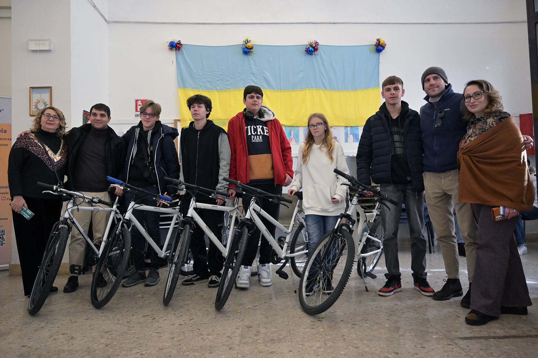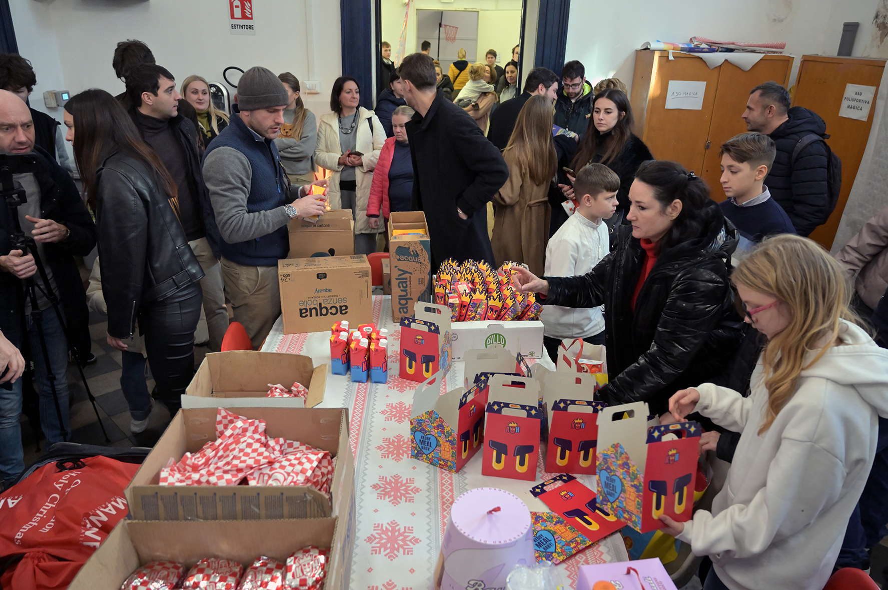 Prima il dovere e poi il piacere, questa è una regola universale, così solo dopo le lezioni, gli studenti si sono radunati nell’atrio della scuola per ricevere i doni portati da Manalive, associazione no profit che opera in tutto il mondo: “Oggi ci troviamo qui al ridosso di Natale perchè abbiamo inserito la scuola Prestigio nell’ambito del nostro progetto “Open action Holy Christmas” cioè portare un regalo di Natale a quelle persone che si trovano per qualche motivo in una situazione svantaggiata. Questo progetto è ormai alla 5° edizione per Manalive, abbiamo portato regali di Natale in Burkina Faso, in Albania, in Armenia in Uruguay, quest’anno anche in Brasile, in Argentina ed anche ai figli delle detenute del carcere di Rebibbia a Roma.” spiega Giammarco Oddo, presidente dell’associazione. “Abbiamo anche 5 biciclette che sono una richiesta esplicita della vicedirettrice della scuola per permettere ai 5 ragazzi più meritevoli di spostarsi più agevolmente per Roma, senza usare i mezzi pubblici.” Durante la festa i bambini delle classi delle elementari si sono esibiti con canti tipici della loro terra. Infine il pranzo offerto da Kebhouze, catena fast food di kebab nata nel 2021 e che in questa giornata ha voluto offrire un pasto solidale a tutti gli studenti e ai professori che hanno partecipato alla festa. Infine la direttrice Tetyana Tarasenko ha ringraziato ogni ente partecipante, tra cui anche Piuculture, consegnando ad ognuno un diploma di ringraziamento.