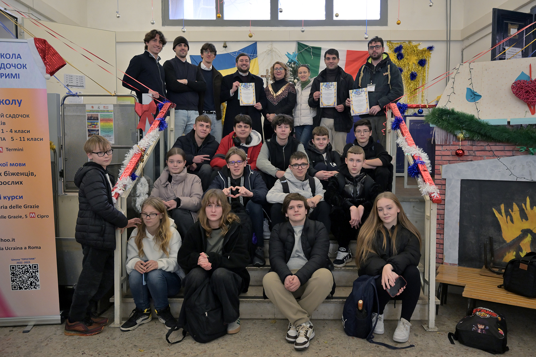La scuola ucraina Prestigio di Roma ha organizzato il 21 dicembre una festa per l’inizio delle vacanze natalizie, infatti solo da quest’anno il calendario ucraino coincide con il nostro, facendo sì che il Natale, previsto dal calendario ortodosso il 7 gennaio, venga anticipato al nostro 25 dicembre.