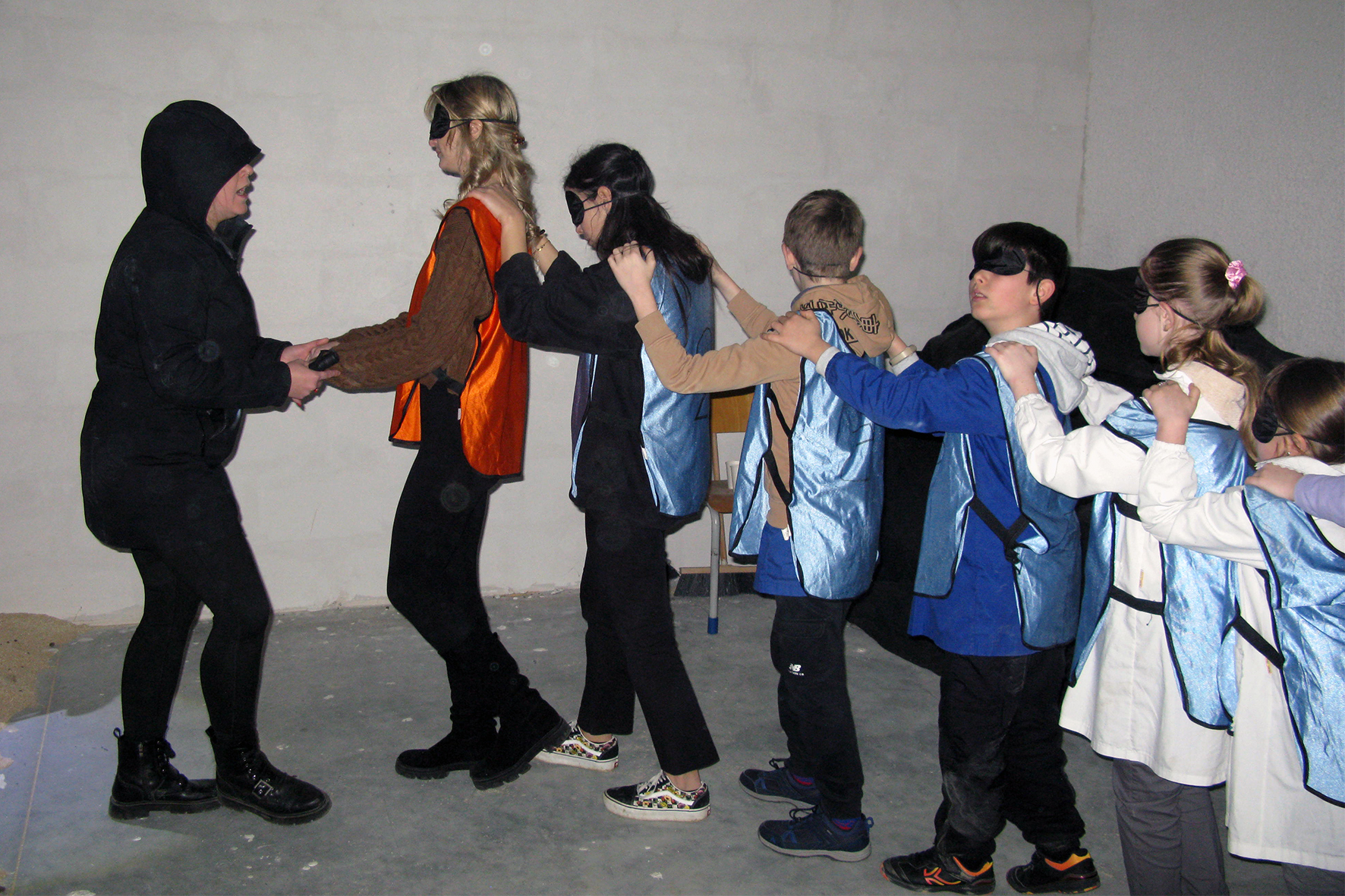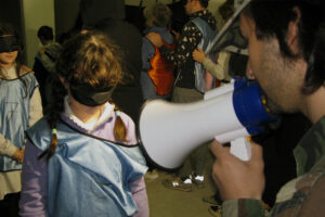 A questo punto i partecipanti vengono fatti entrare in un tunnel con alte pareti di cemento, al termine del quali incontreranno “i trafficanti” che li benderanno. Da questo momento si entra nel vivo dell’esperienza, ora i partecipanti saranno impotenti, dovranno affidarsi in tutto e pertutto nelle mani dei trafficanti che li guideranno nel viaggio verso la salvezza.
