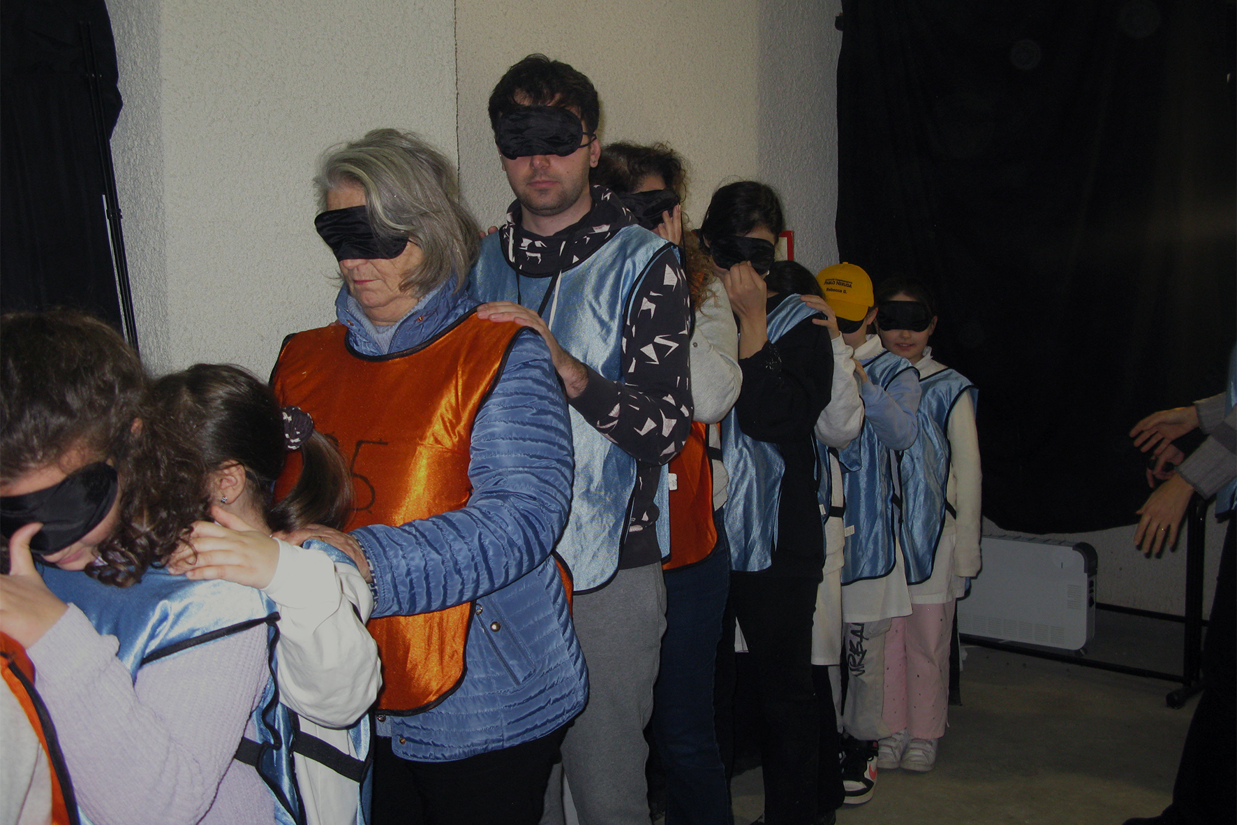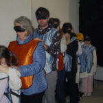 Una volta finita l’esperienza i partecipanti vengono riportati al punto di partenza, quì ci sarà la restituzione, ovvero il momento in cui si tolgono le bende e si ragiona su ciò che si è vissuto a livello emozionale e Giulia e Rebecca fanno un lavoro di sensibilizzazione partendo dall’esperienza vissuta.