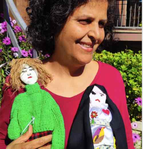 Ma forse anche scrivere non era sufficiente ad esprimere tutto e così quando una figlia parte per l’Italia per seguire il suo amore, Shahnaz ricomincia a cucire. Aveva iniziato da piccola, la mamma e la nonna cucivano in casa vestiti e tovaglie patchwork coi ritagli di tessuto. Con gli stessi ritagli di stoffa Shahnaz inizia a cucire piccole bambole di stoffa che assomigliano a sua figlia, intessute di dettagli e di nostalgia. La famiglia, che dopo la separazione dal marito era diventata un gineceo di quattro donne, era ancora più piccola e quando anche la seconda e poi la terza figlia decidono di partire, Shahnaz rimane sola ed altre bambole vengono cucite. Con il tempo se ne aggiungono ancora, per rappresentare persone o momenti importanti della sua vita e diventano simboli, strumenti per esprimere concetti difficili da condensare in parole, dettagli a cui si possono affidare sentimenti, pensieri, ricordi.