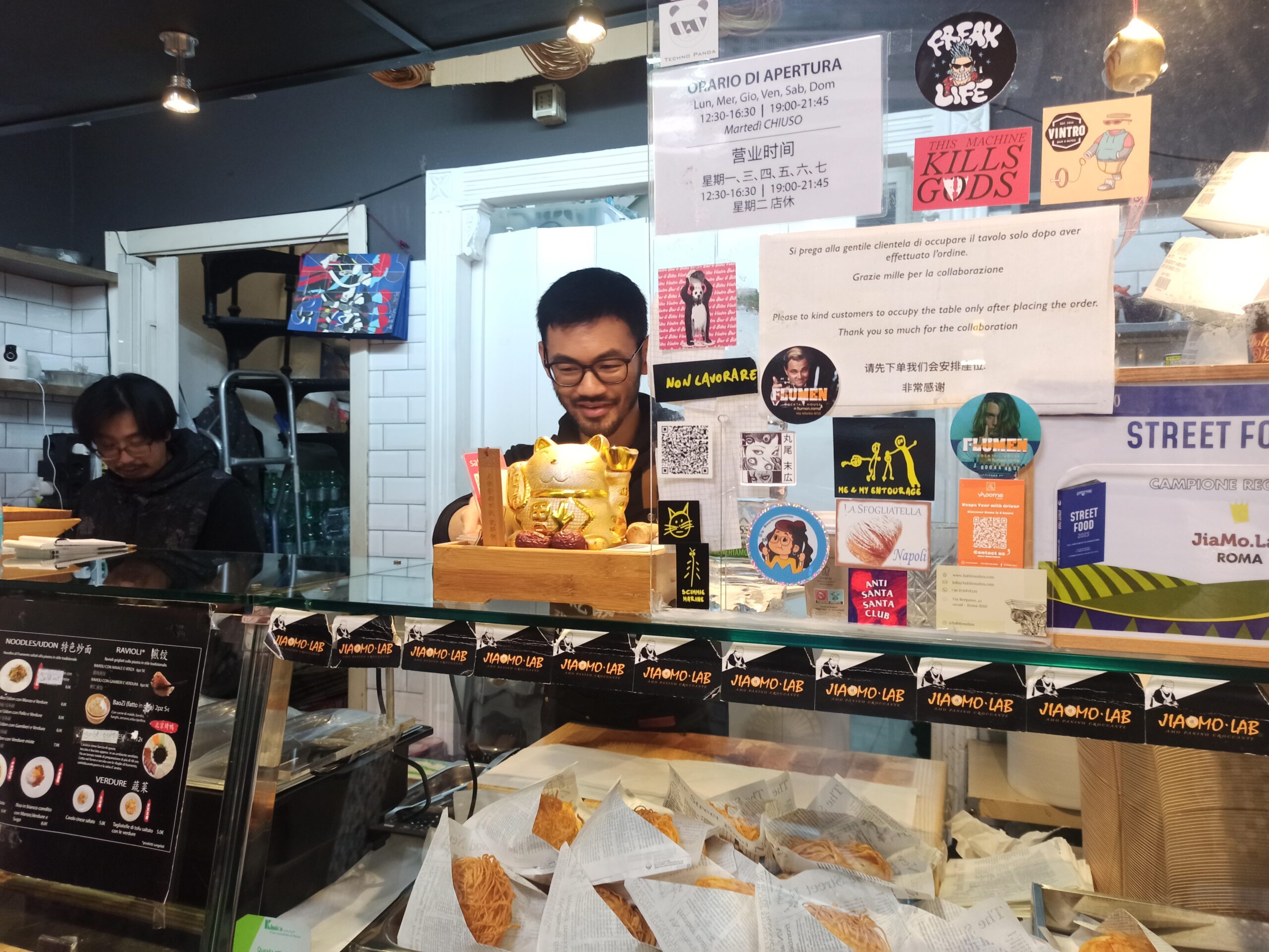 A piazza Fiume c’è un piccolo ristorante cinese che si chiama “Jiaomo · Lab” e prepara panini tipici orientali. Il proprietario del locale si chiama Chen, un ragazzo che viene dal sud-est della Cina, ha 29 anni ed è molto simpatico e accogliente.