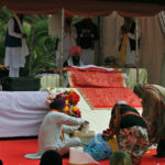 Dopo di che le donne pulivano e disinfettavano la strada per il passaggio del carro che trasportava il libro sacro. Attorno al quale si erano riunite le figure religiose, vestite di blu ed arancione e che sfoggiavano le lucenti spade sacre.