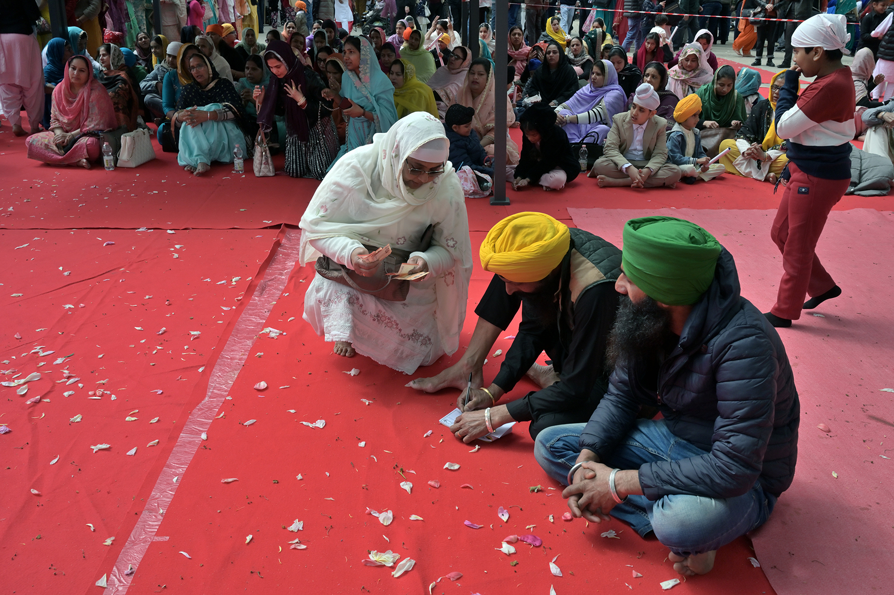 Dopo di che le donne pulivano e disinfettavano la strada per il passaggio del carro che trasportava il libro sacro. Attorno al quale si erano riunite le figure religiose, vestite di blu ed arancione e che sfoggiavano le lucenti spade sacre.