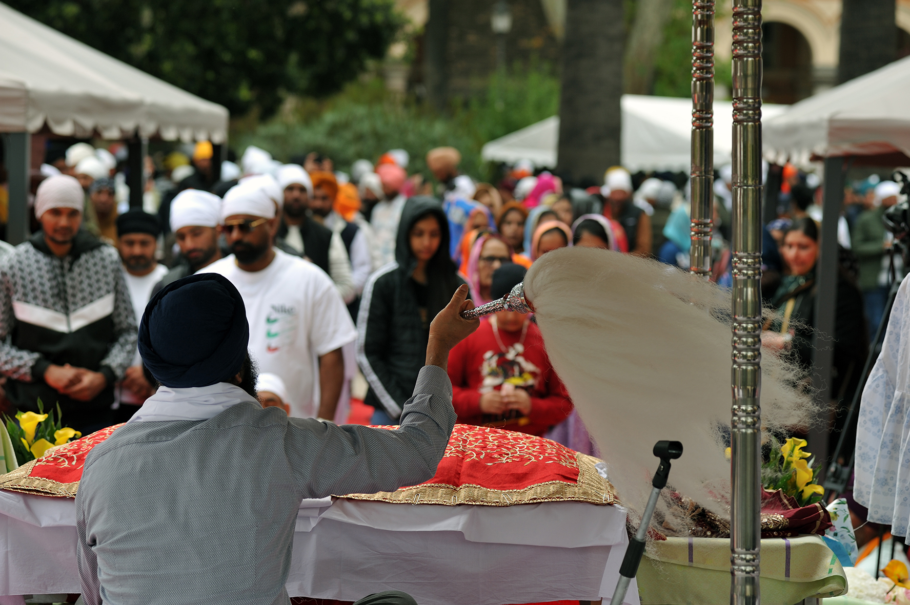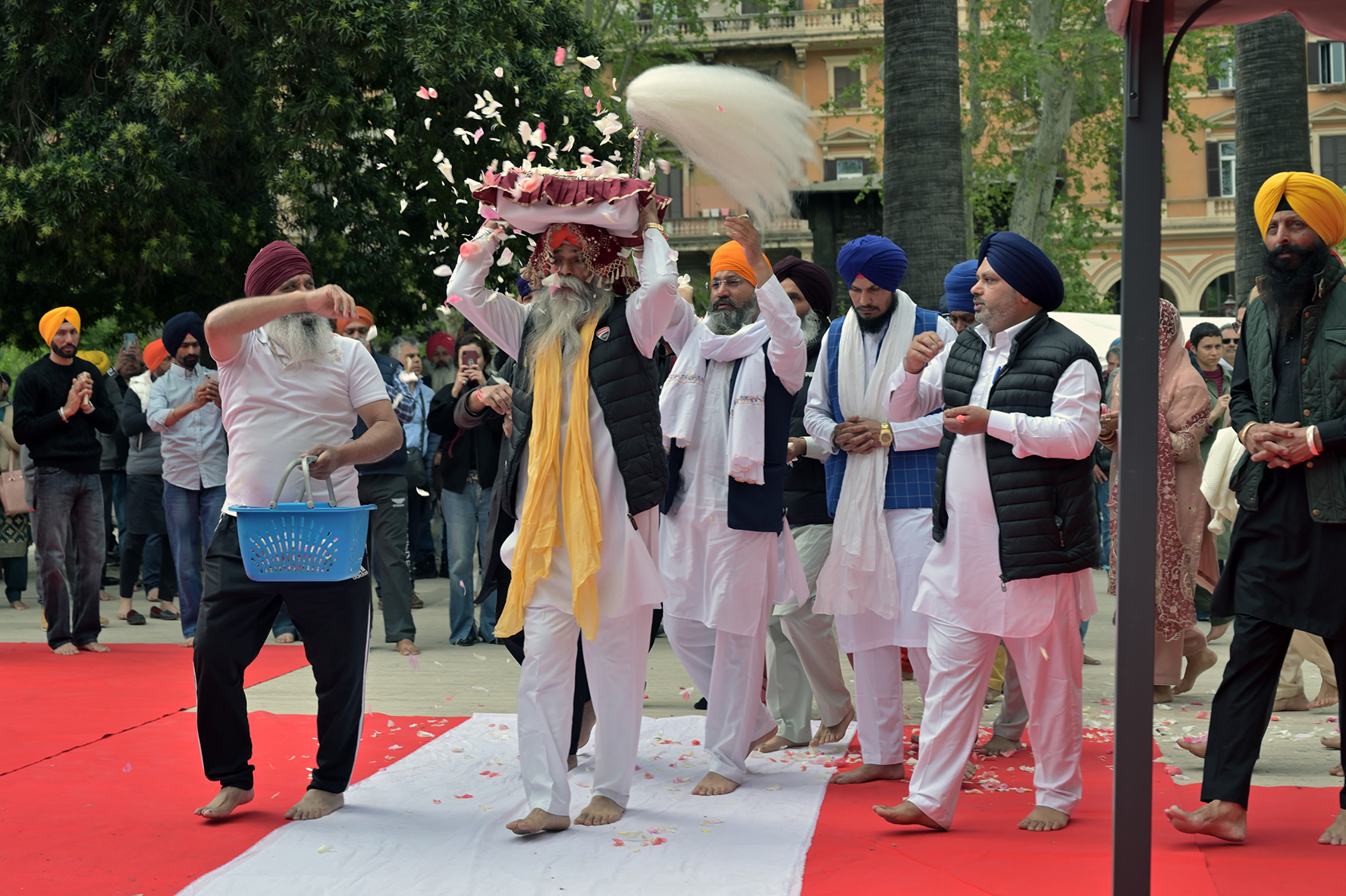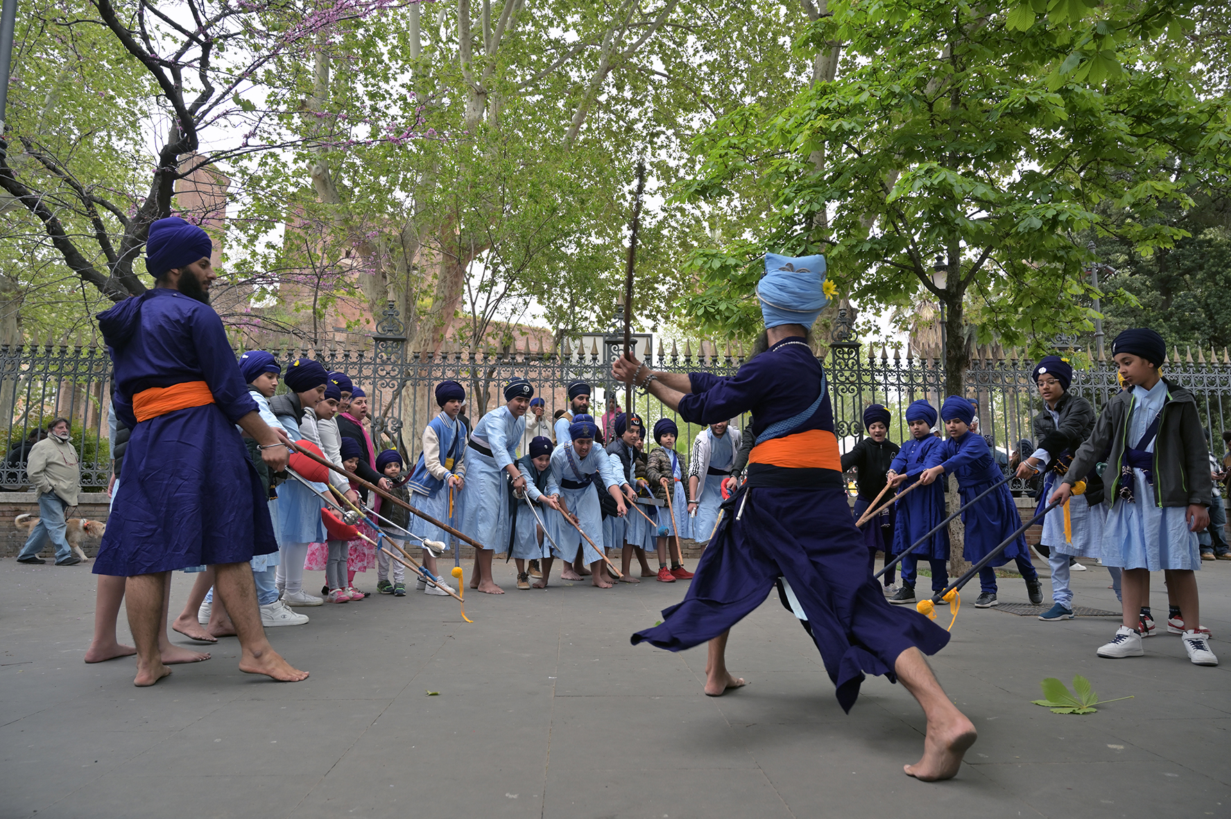La processione ha sfilato per le vie di Roma attorno a piazza vittorio, in testa al corteo c’erano i ragazzi che mentre camminavano davano spettacolo con l’arte marziale Gatka, una disciplina che prevede l’uso di bastoni, spade e salti.