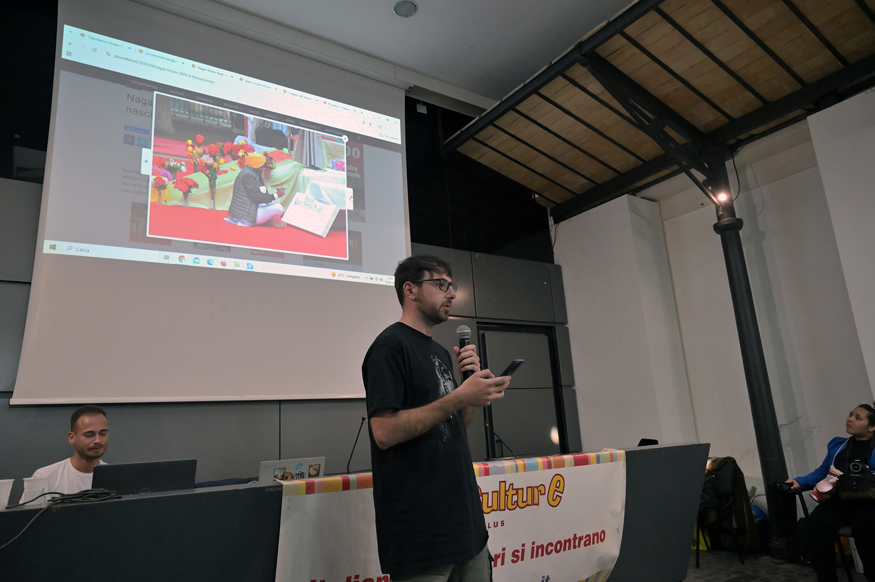 Nella sala che ha accolto il pubblico, composto da educatori e amici, sono state esposte le varie fotografie scattate durante le uscite e i post-it scritti dai ragazzi con le impressioni suscitate dalle attività svolte nel corso degli incontri. L’evento ha avuto inizio con una breve presentazione del laboratorio, a cui è seguita la proiezione del video, realizzato dal videomaker Antonio Totaro, che ha illustrato le varie tappe dell’esperienza vissuta dai MSNA. Un riepilogo di quattro mesi di corso durante i quali i ragazzi hanno acquisito le nozioni base del giornalismo e hanno partecipato a eventi culturali e religiosi intervistando i membri della comunità. Punto di arrivo di queste attività sul campo è stato la scrittura di articoli pubblicati sul giornale che i tutor hanno proiettato e commentato, elogiando l’impegno profuso dai ragazzi, la dedizione da loro dimostrata nel raccontare una storia e la graduale crescita di competenza che si è avuta con il passare del tempo.