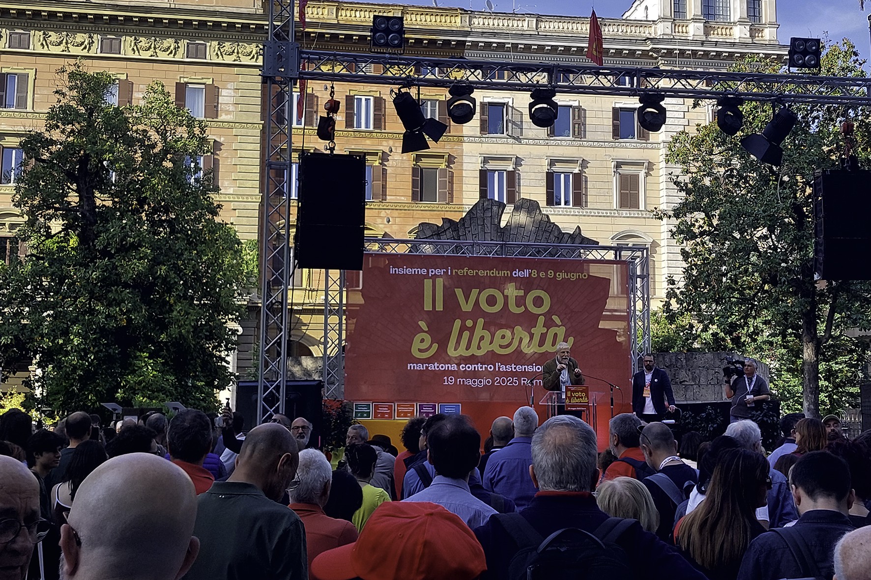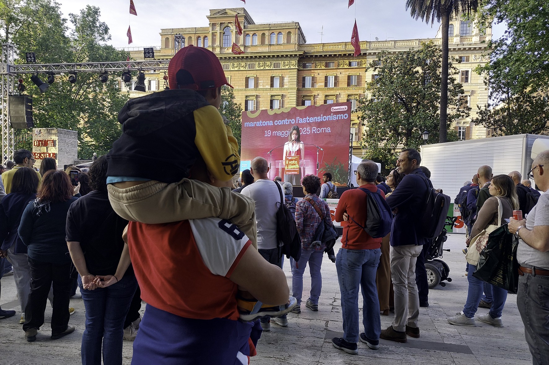 “Tutti possiamo fare la nostra parte, cominciamo a fare rumore, a renderci visibili” ha detto ancora, invitando i partecipanti a parlare dei Referendum con i propri amici e colleghi di lavoro. La CGIL, in segno di protesta contro la scarsa informazione dei mezzi di comunicazione ha presidiato le sedi della RAI e ha fatto volantinaggio, alle uscite della Metro a Roma, come ha ricordato, dal palco, lo stesso segretario della CGIL Maurizio Landini.” molte persone che prendevano il volantino mi guardavano in faccia e mi chiedevano: ‘dobbiamo votare per te?’ questa domanda è indicativa di un certo modo di intendere la politica, le persone non sono abituate a votare per se stessi, per i propri diritti ma sempre per qualcun altro” ha sottolineato Landini.