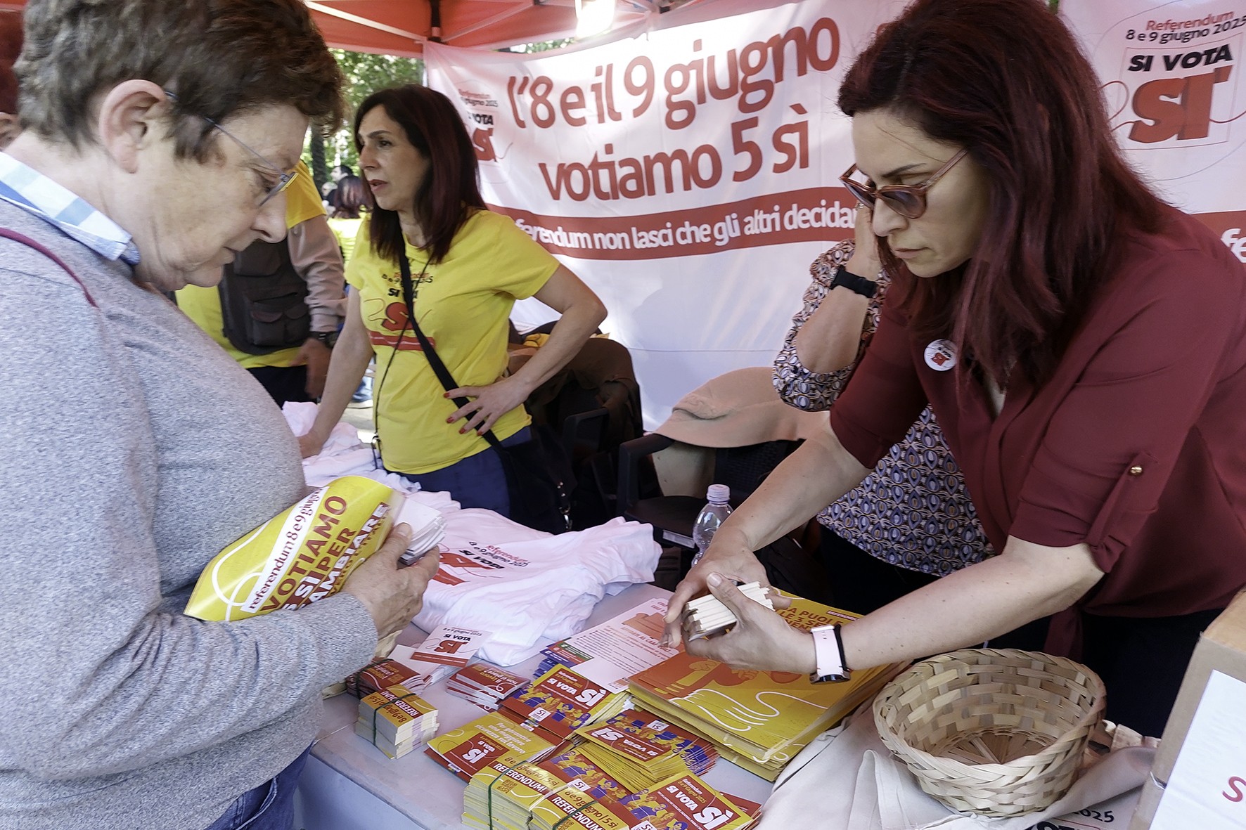 Agli stand della CGIL gli attivisti parlano con gli spettatori che si soffermano a prendere volantini e gadget. “Siamo qui perché è importantissimo votare per questi referendum “ esordisce Maria Grazia, “abbiamo raccolto 4 milioni e mezzo di firme, perché con questi referendum si ridanno i diritti ai lavoratori che si sono persi con il jobs act. C’è bisogno di tornare ad essere protagonisti del nostro agire sociale e c’è bisogno di dare voce a chi questi spazi democratici non li può abitare“ aggiunge Laura, delegata della CIGL dell’Università di Roma.